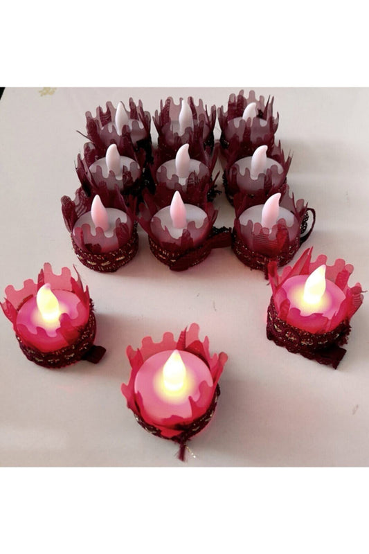 Ledli Kına El Mumu 12'li Paket Bordo Kına Led Mum Bordo
