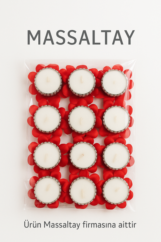 Kırmızı El Mumu 12’li Set – Dağıtmalık Taşlı Mum Kına Gecesi Aksesuarı Hediyelik