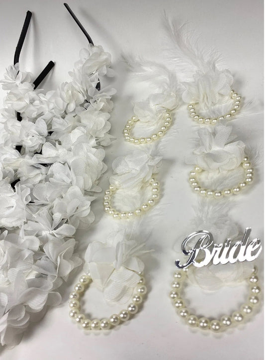 1 Adet Bride Tacı Ve Bilekliği 10 Adet Incili Tüylü Nedime Bilekliği