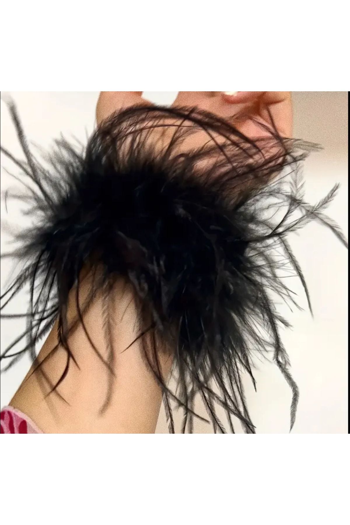 2 schwarze Federarmbänder, Damenaccessoires Armmanschetten