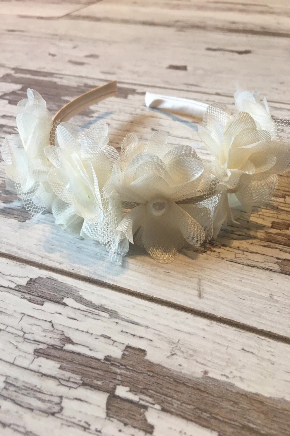 7 Blumen mit weißem Satin überzogene Frida-Party-Krone für Mädchen und besondere Tage