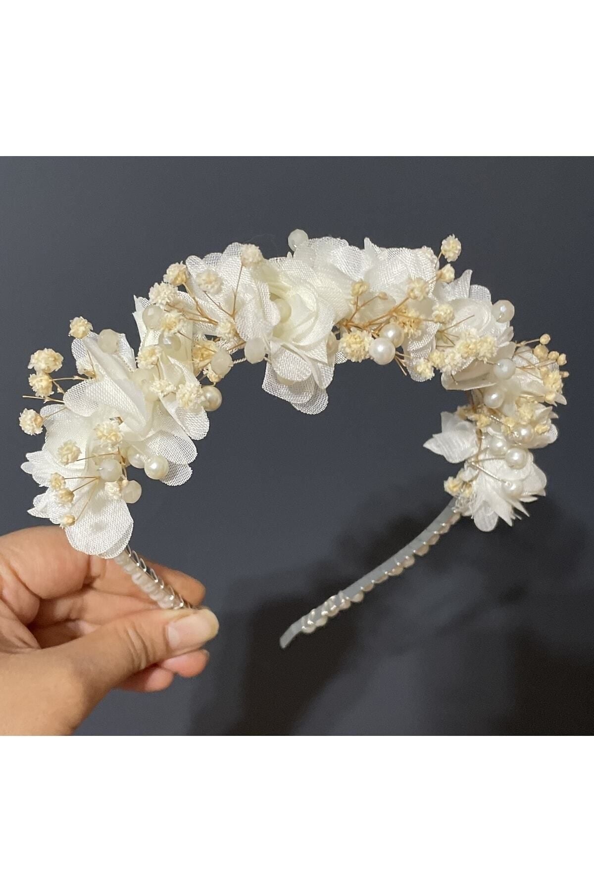 Blumenkrone mit Kristallsteinen bestickt für Braut, Verlobung, Schwangerschaft und Kind