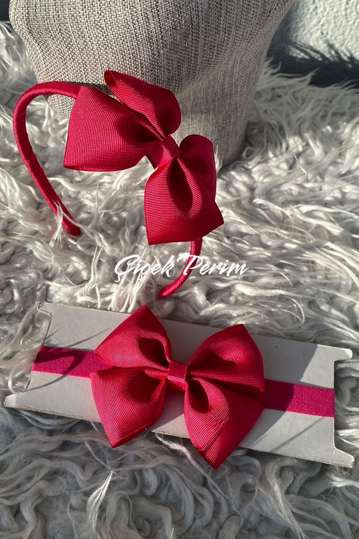Fuchsiafarbenes Mutter-Kind-Stirnband und Baby-Bandana mit Fliege