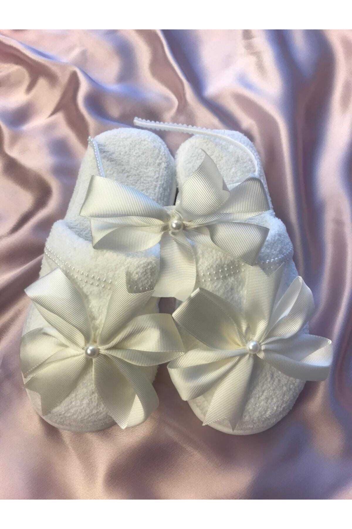 Cremefarbenes Umstands-Slipper-Set mit Fliege und Krone 1006