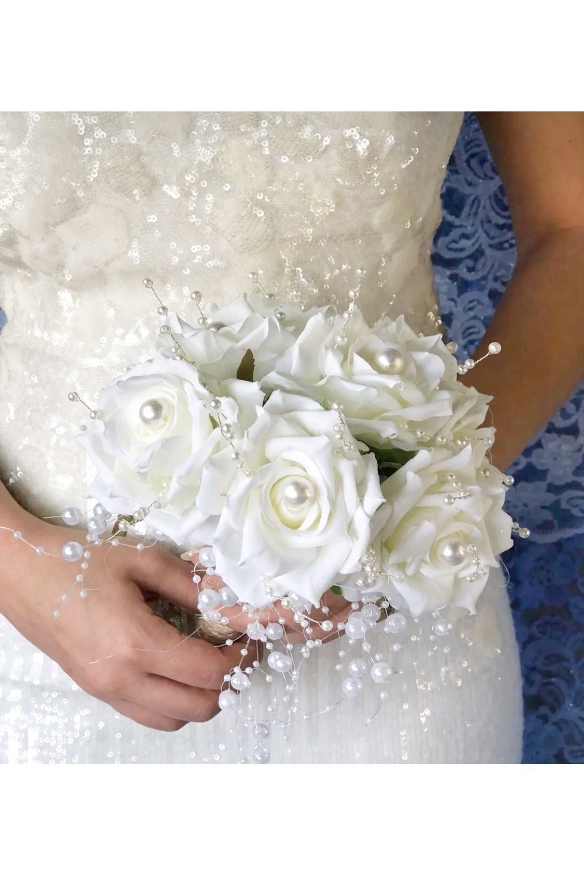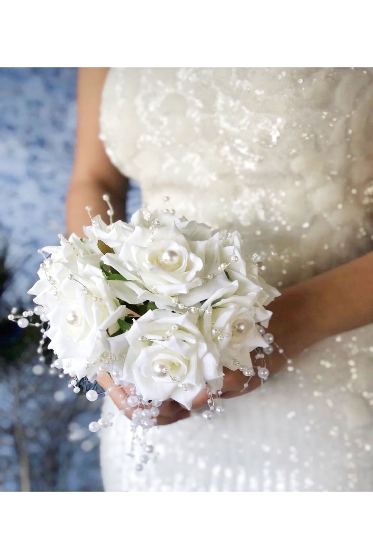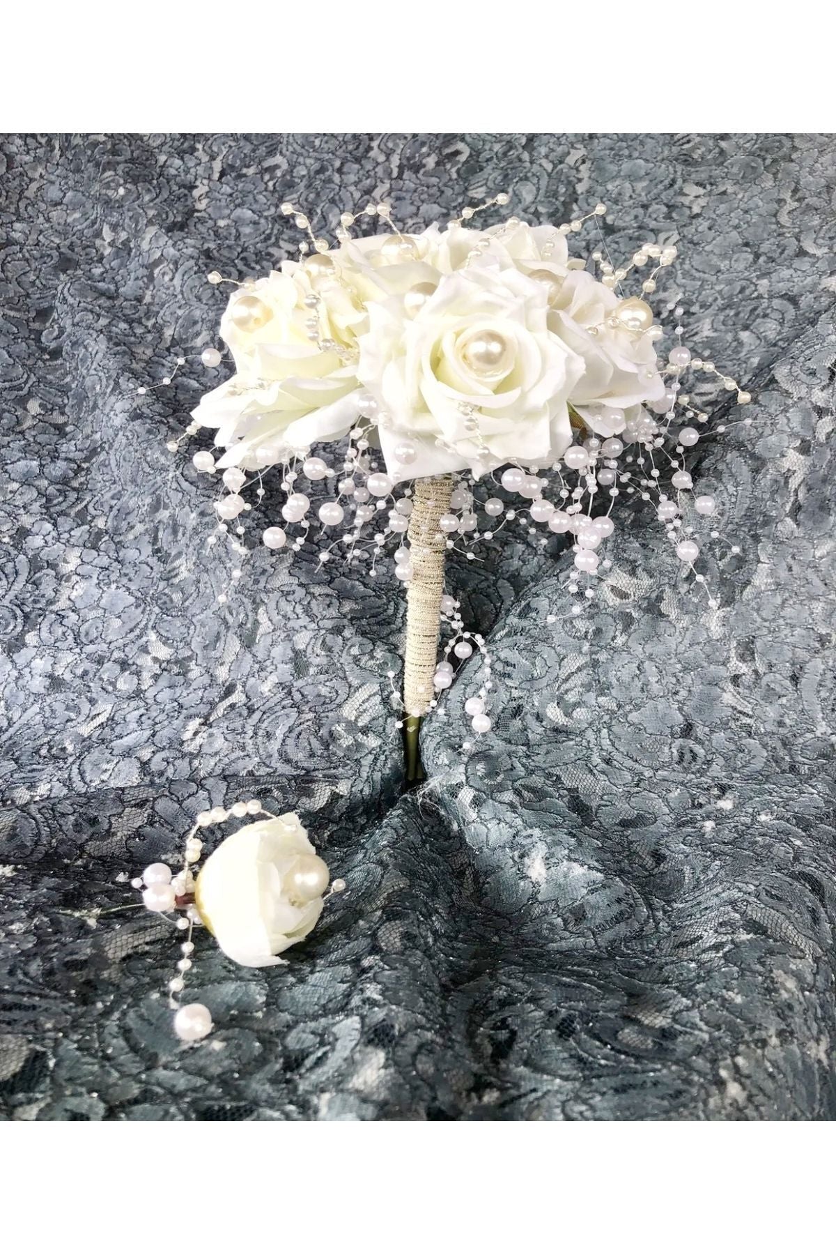 Perlweißer Brautstrauß und Ansteckblume für den Bräutigam (HOCHZEIT, VERLOBUNG, HENNA, HANDBOUQUET, BRAUTBOUQUETS, BRÄUTIGAM)