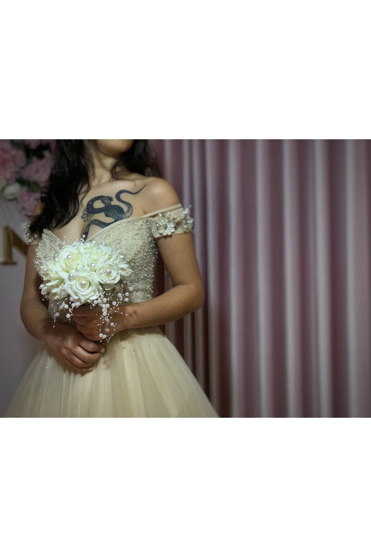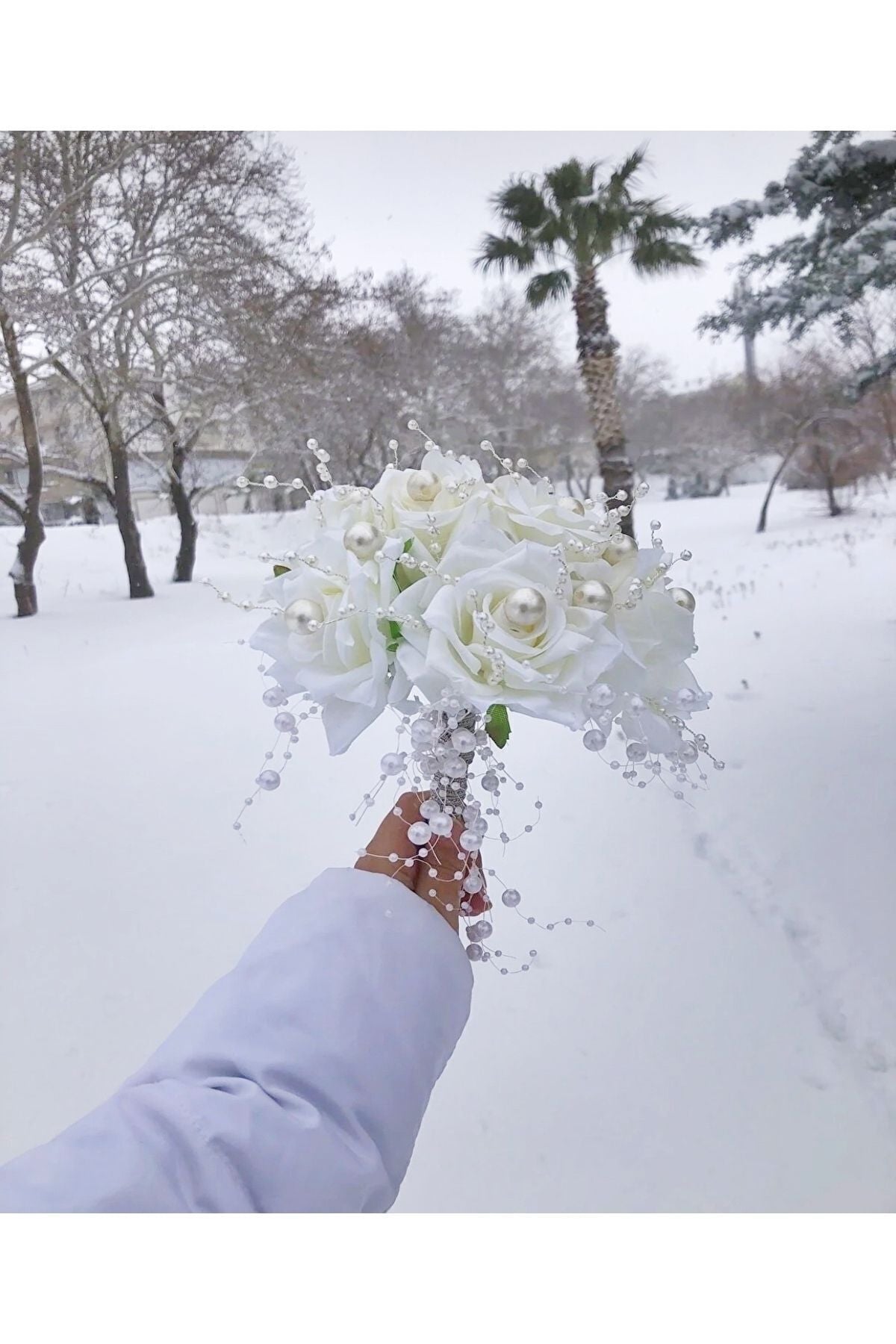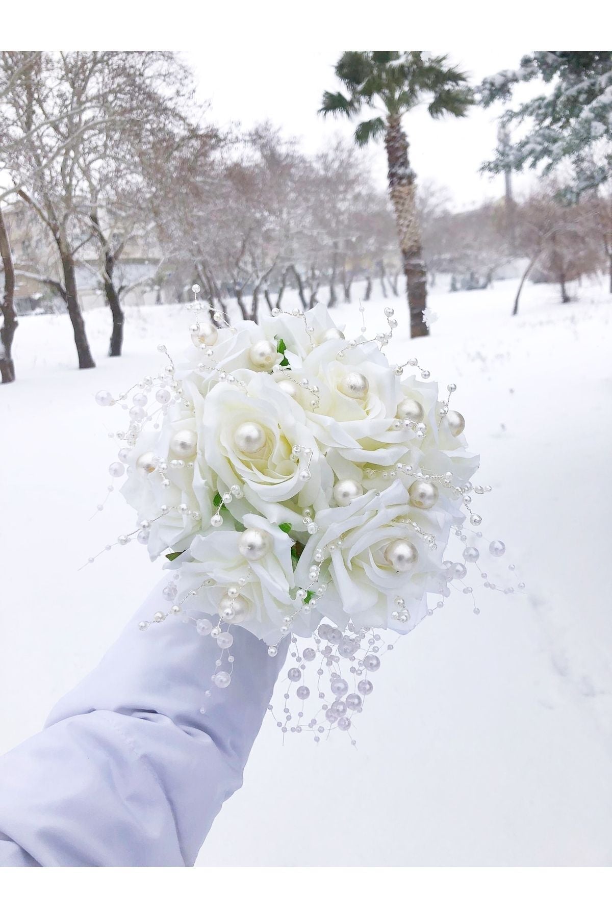 Perlweißer Brautstrauß und Ansteckblume für den Bräutigam (HOCHZEIT, VERLOBUNG, HENNA, HANDBOUQUET, BRAUTBOUQUETS, BRÄUTIGAM)