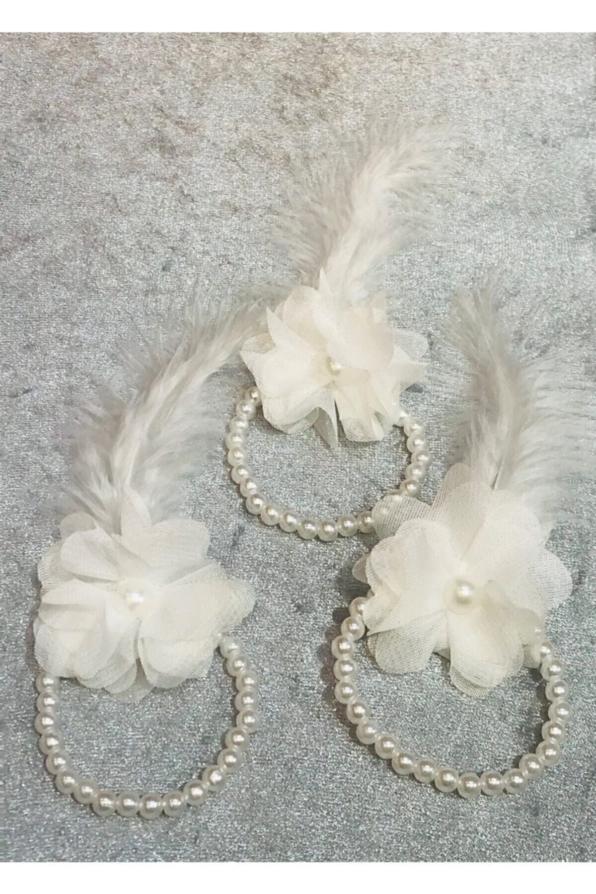 Perlen- und Federarmband für Brautjungfern, 12 Stück