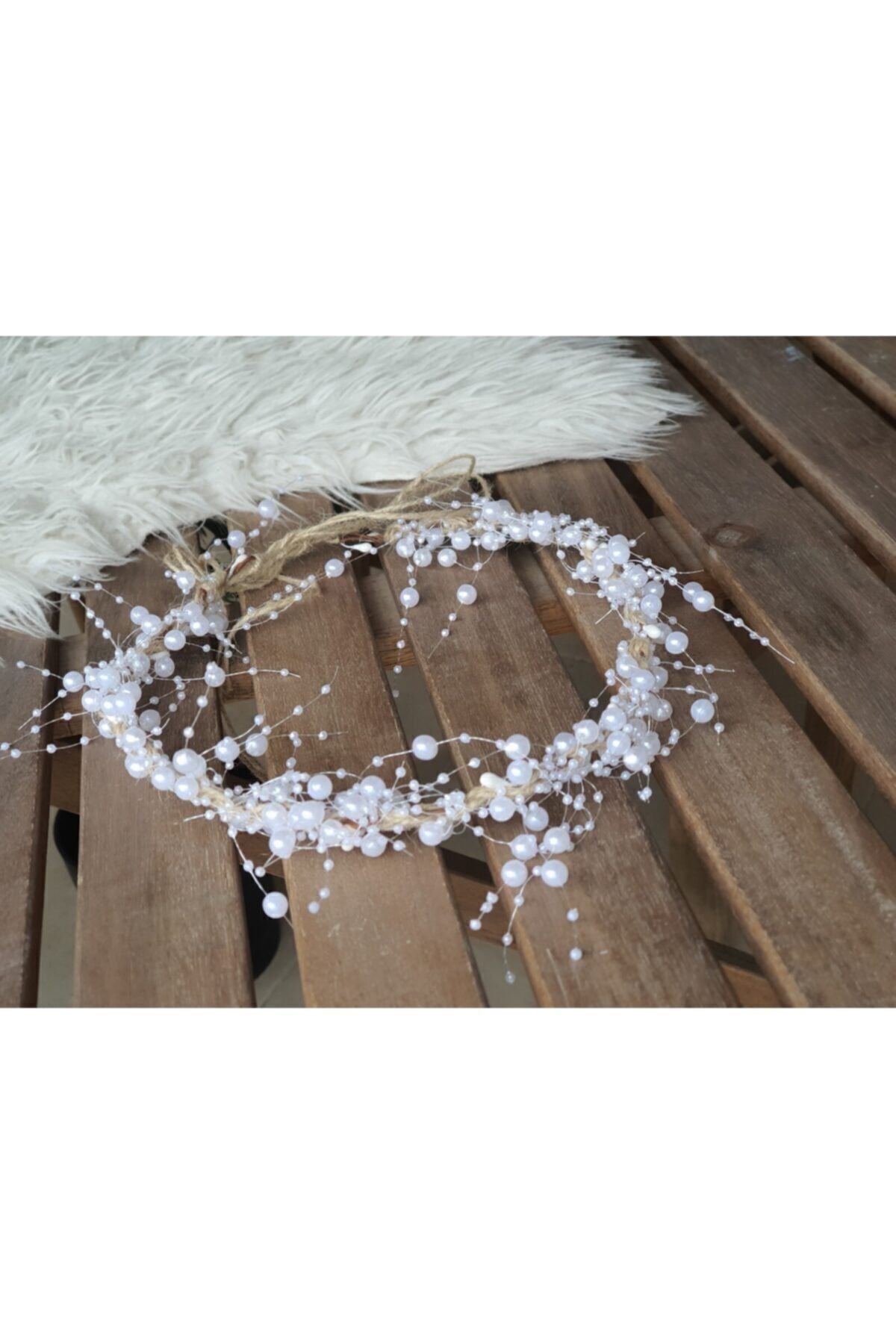 Weiße, schlichte Schwangerschaftskrone mit Perlen für Damen