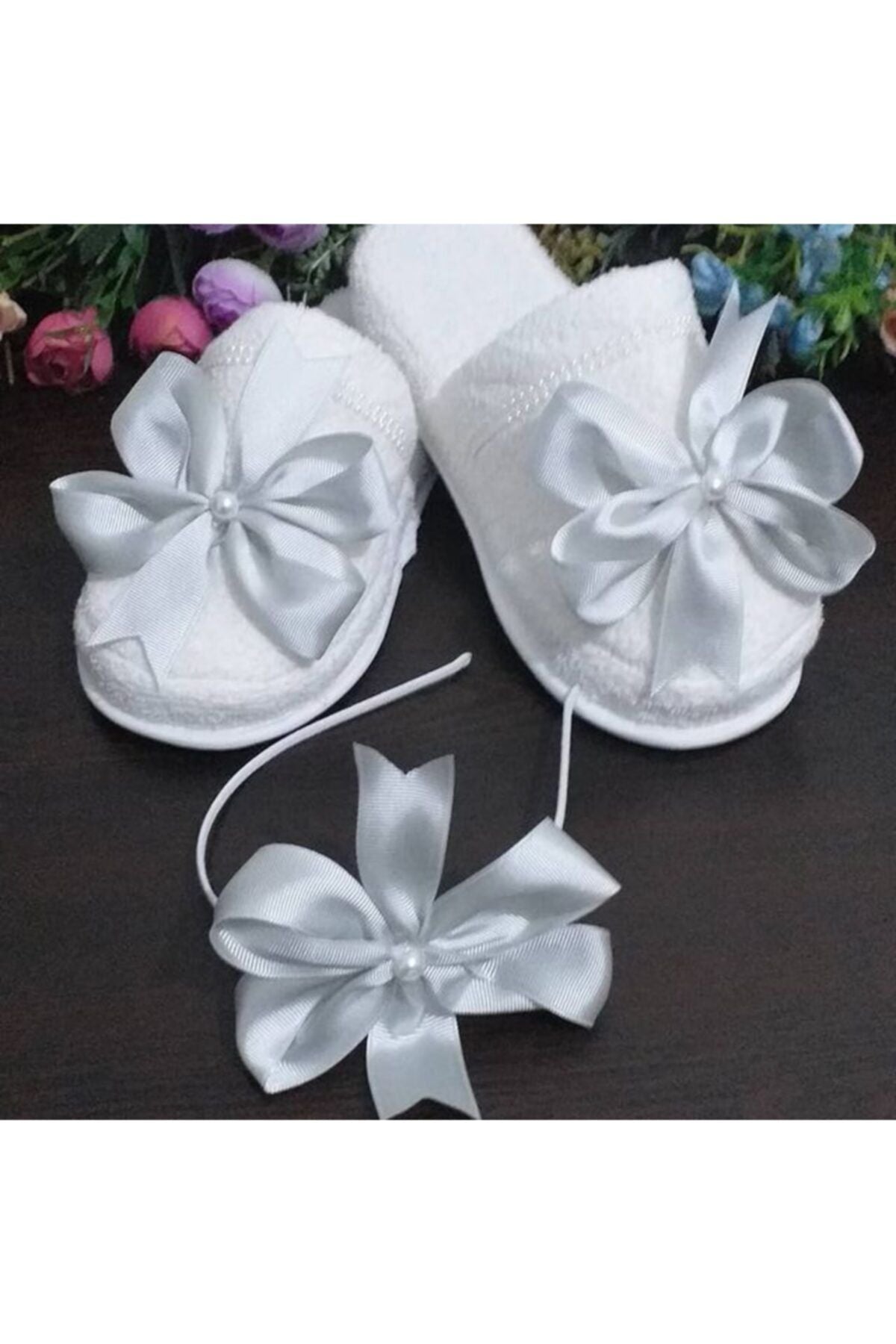 Graues Umstandskronen-Set mit großer Schleife und Umstandspantoffeln für Damen