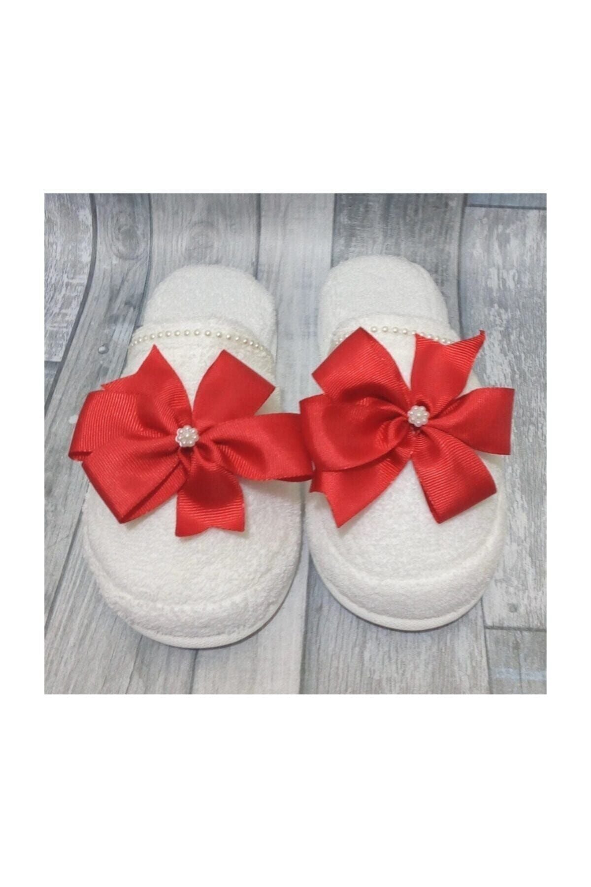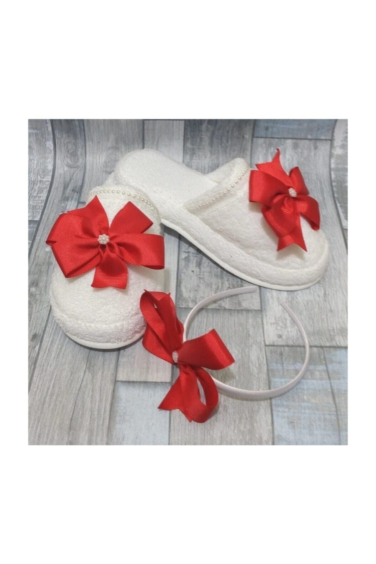 Rotes Umstandskronen-Set mit großer Schleife und Umstandspantoffeln für Damen