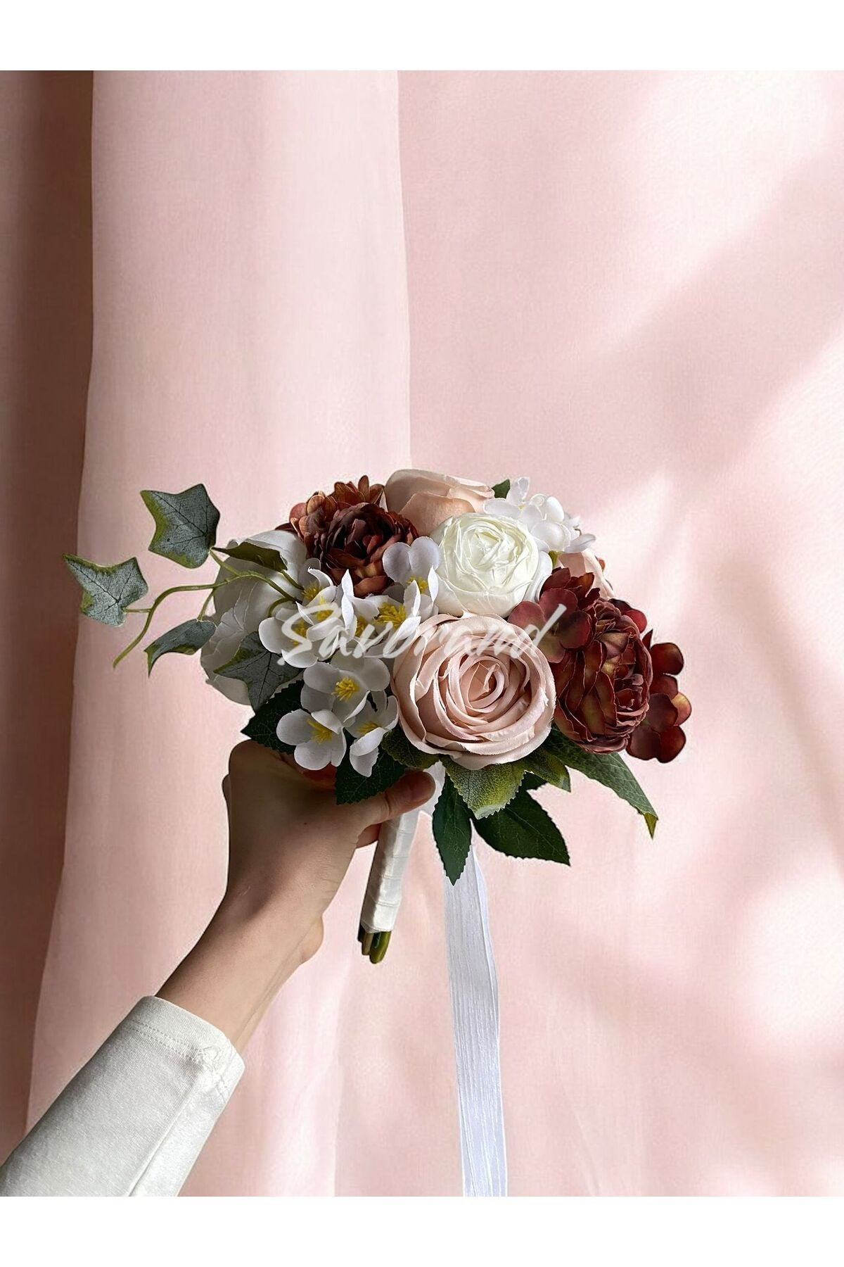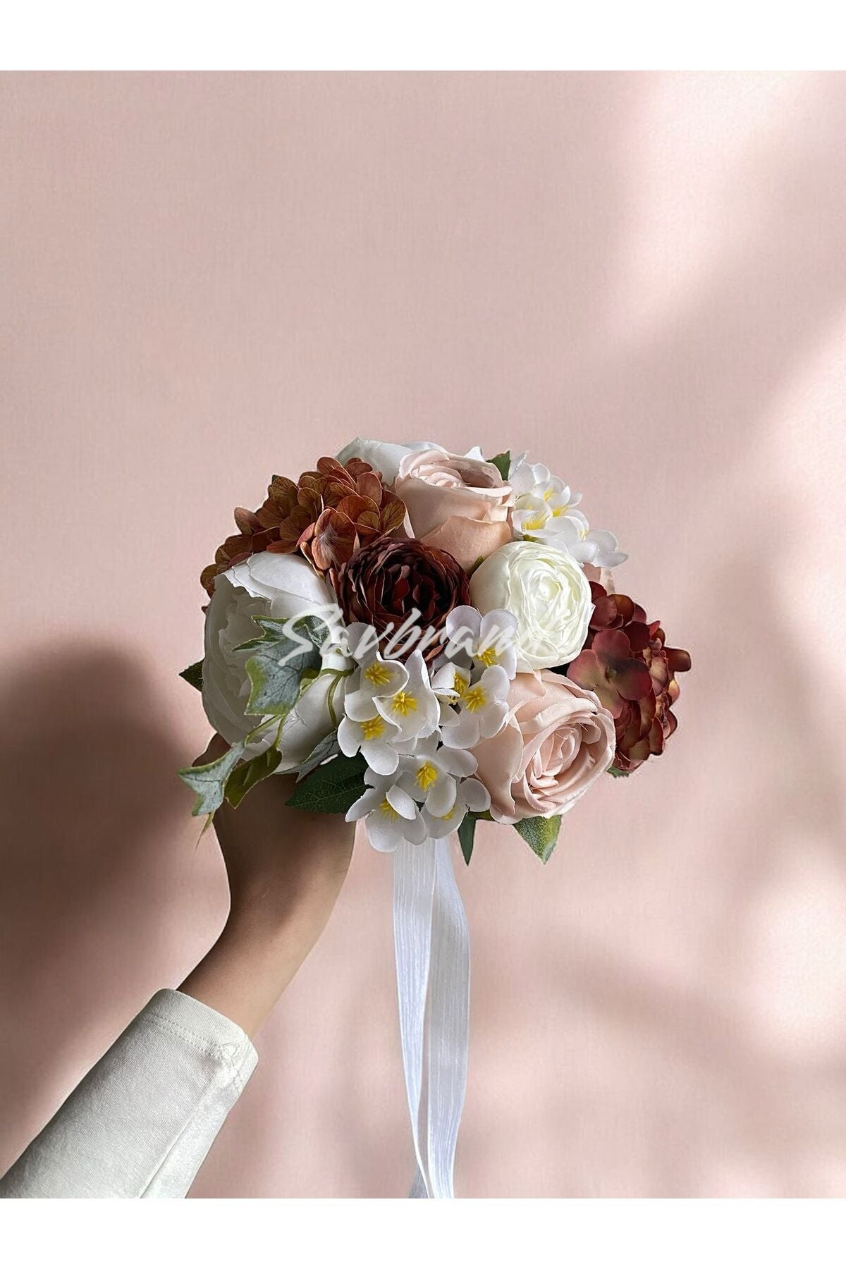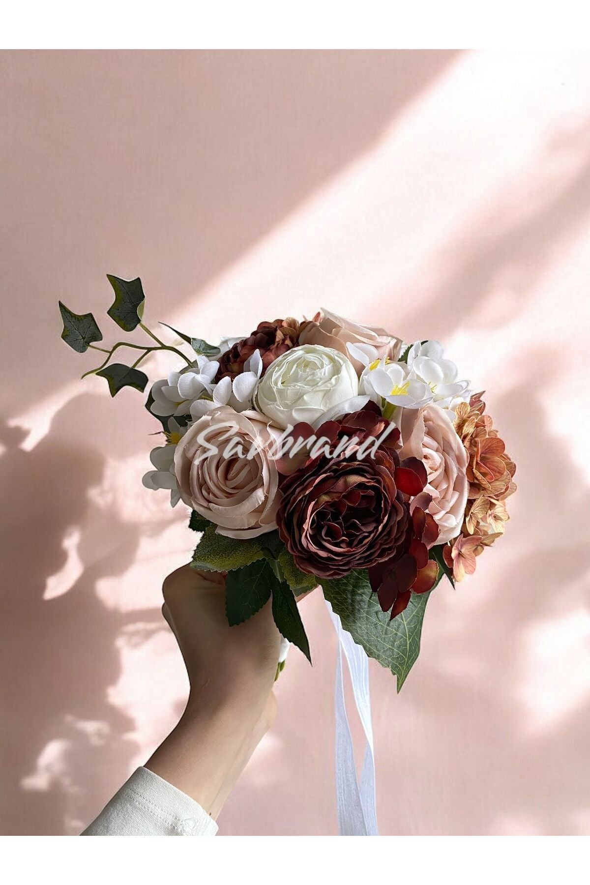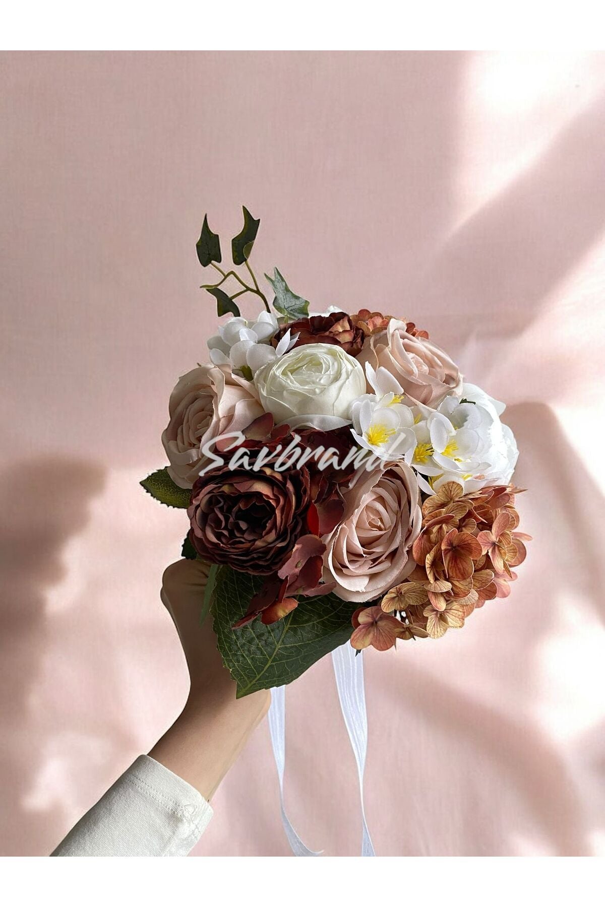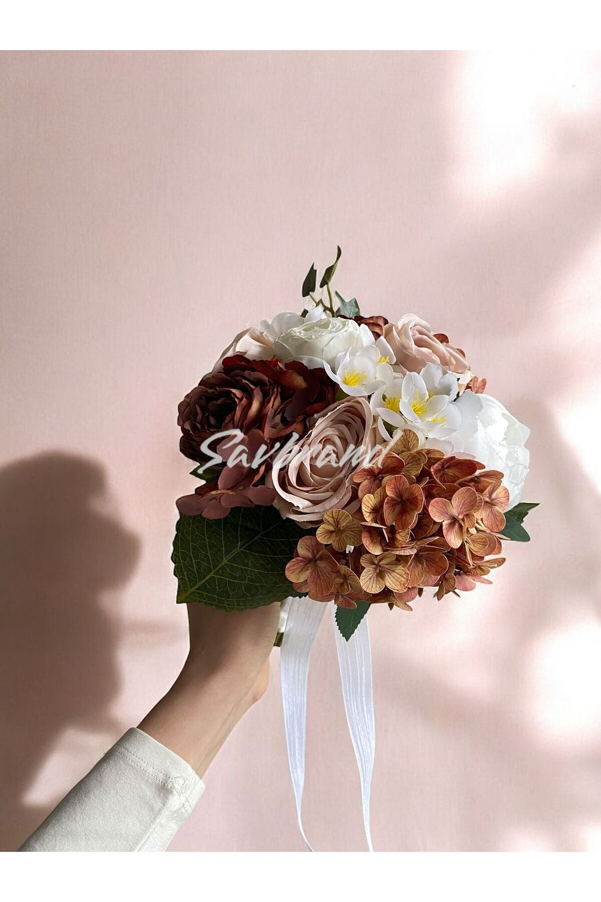 Kaffeefeuchte Hortensie Brautstrauß und Boutonniere - Verlobungsstrauß - Hochzeitsstrauß