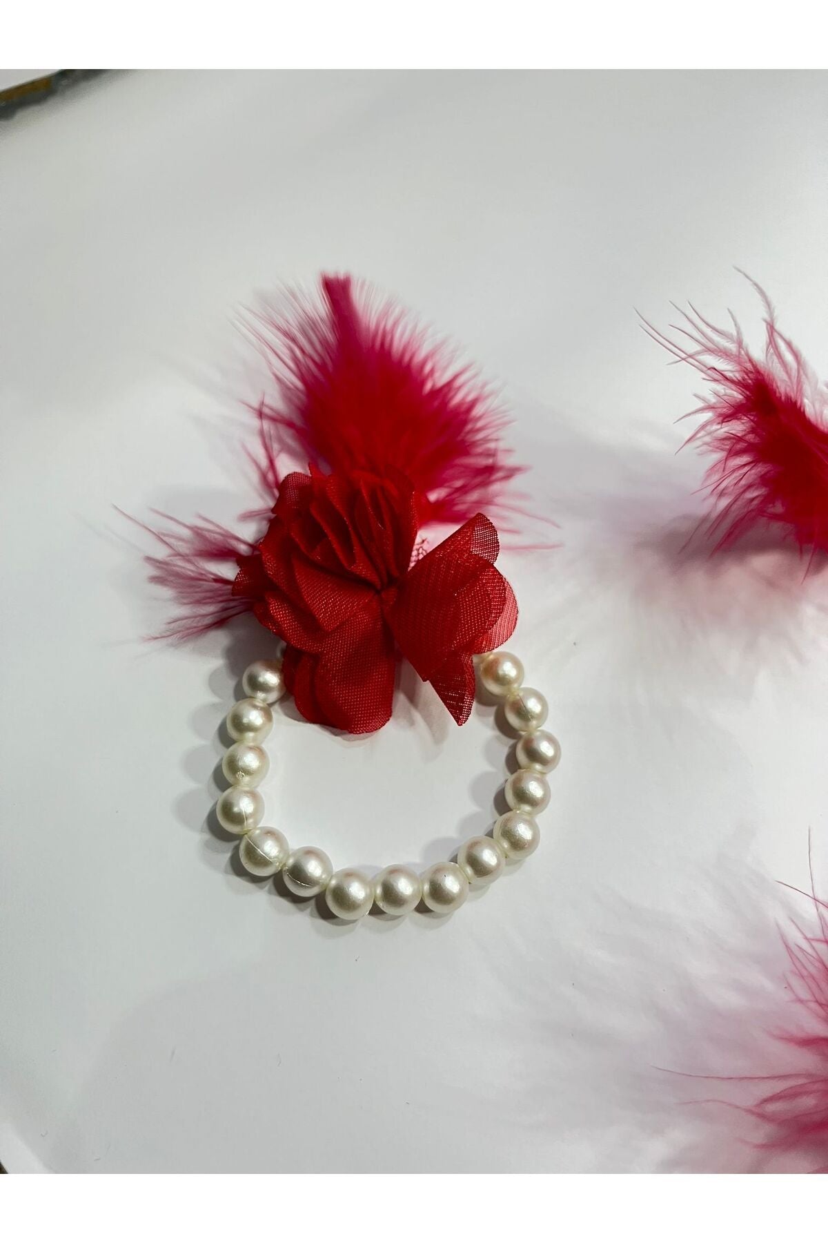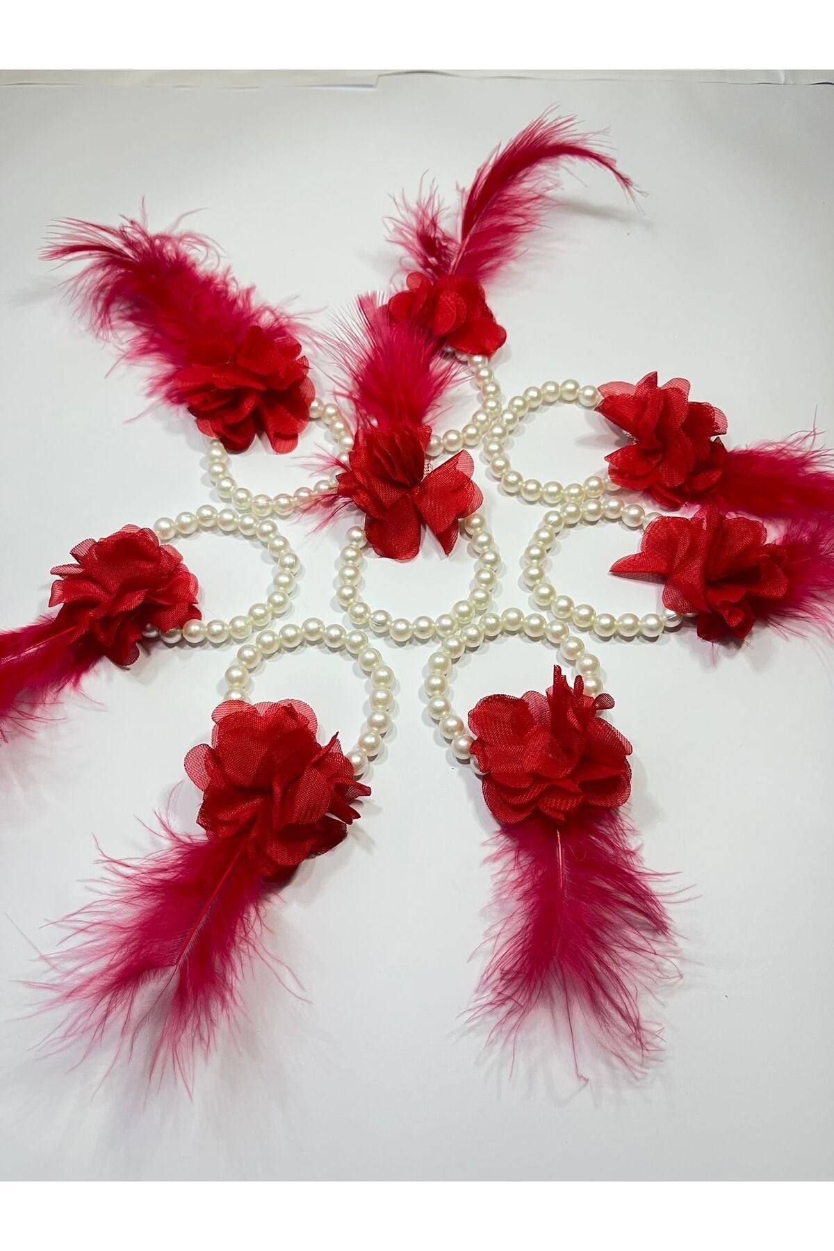 Spezialangebot für die Henna-Nacht: Rotes 6-teiliges Brautjungfernarmband mit Federn