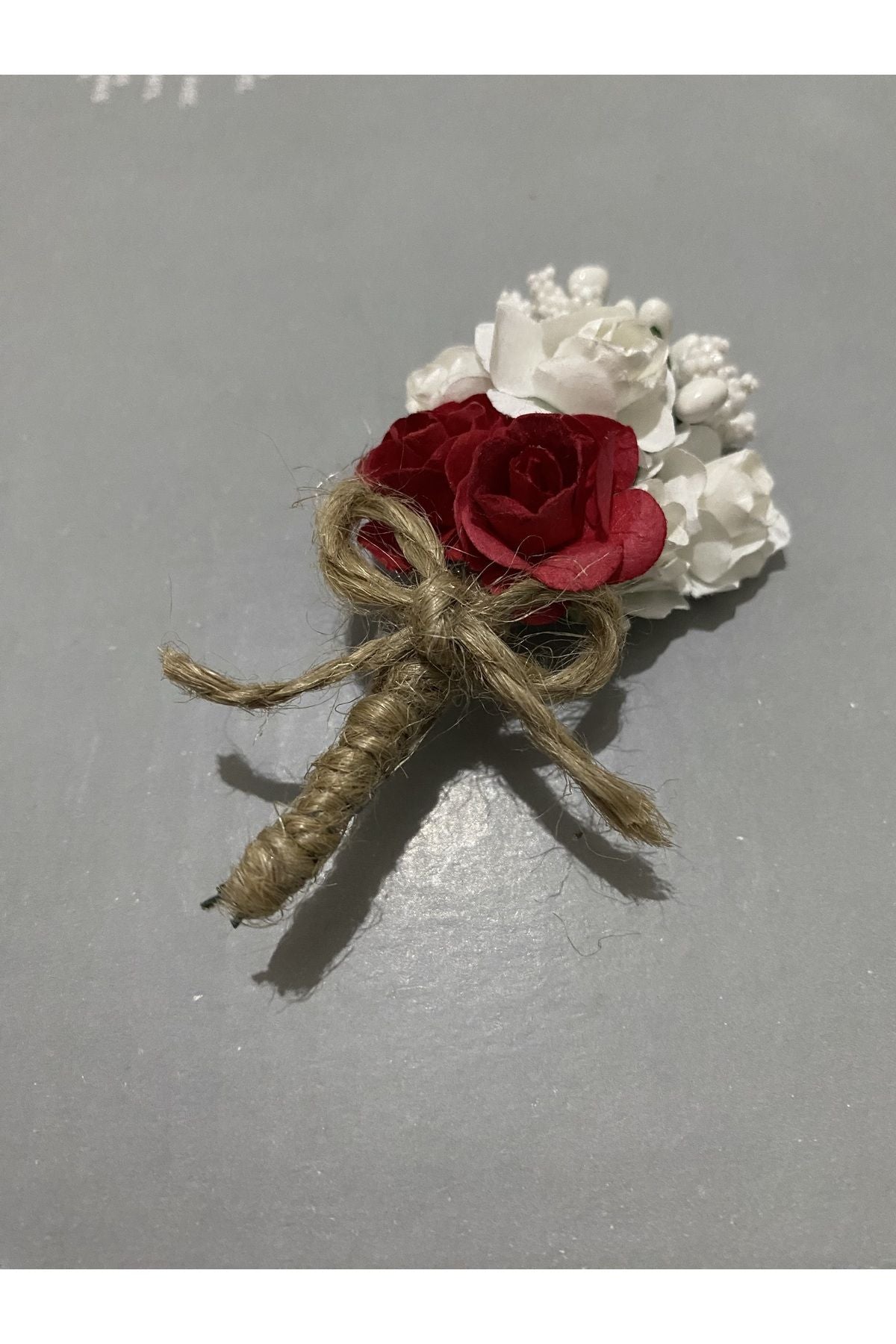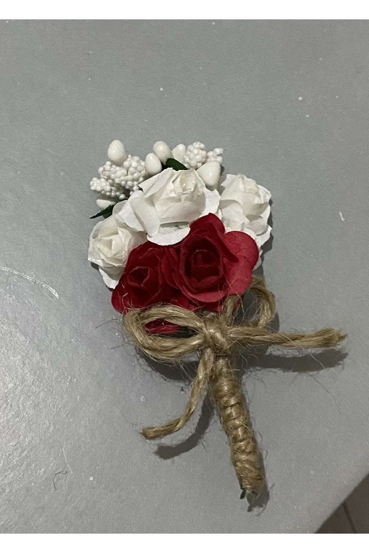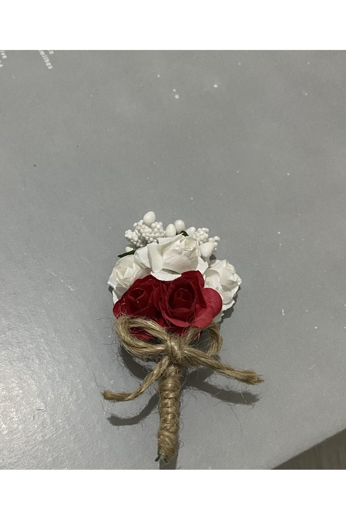 Rote und weiße Papierrose Boutonniere, Anstecknadel