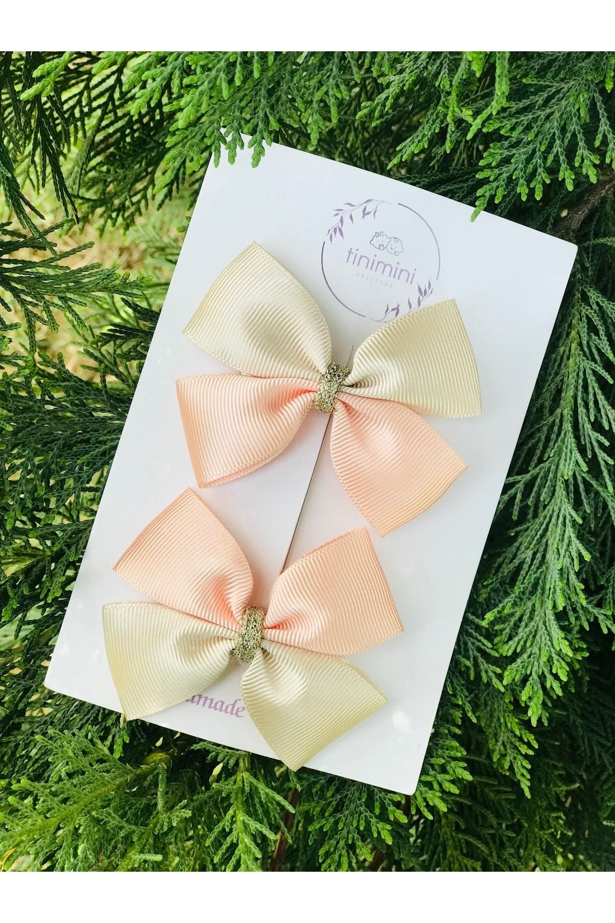 Lachsfarbenes Dornschließe-Set mit Doppelschleife für Mädchen
