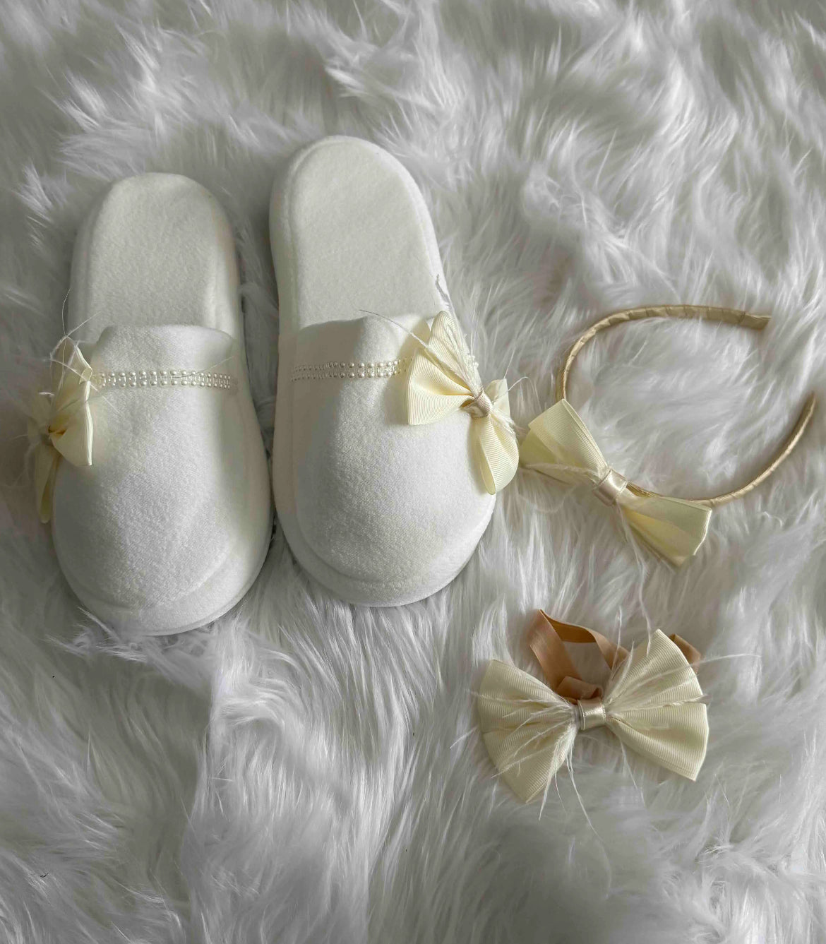 - Cremefarbene Umstandspantoffeln mit Fliege und Fell: Sie bieten Eleganz und Komfort mit ihrer weichen Textur, der bequemen Sohle und dem eleganten Design mit Fliege und Fell. Sie hinterlassen keine Spuren an Ihren Füßen und sind leicht und atmungsaktiv für den ganzen Tag.