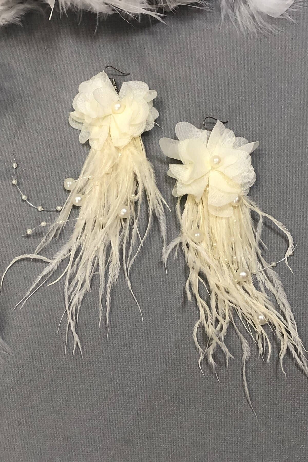 Cremefarbene Perlen-Ohrringe mit Blumenfedern