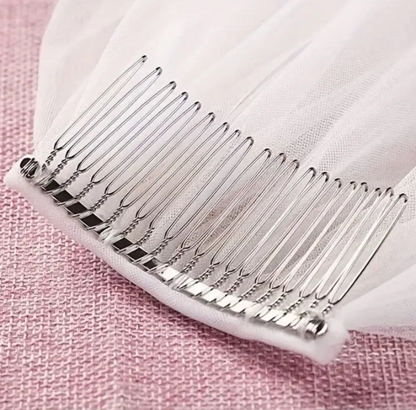 Metallkammclips sind ein strapazierfähiges und langlebiges Haaraccessoire, das häufig für Brautschleier verwendet wird. Sie bieten starken Halt für Schleier, Diademe, Stirnbänder und Haarschmuck für besondere Anlässe. Dank ihrer Edelstahlkonstruktion eignen sie sich ideal für professionelles Styling.