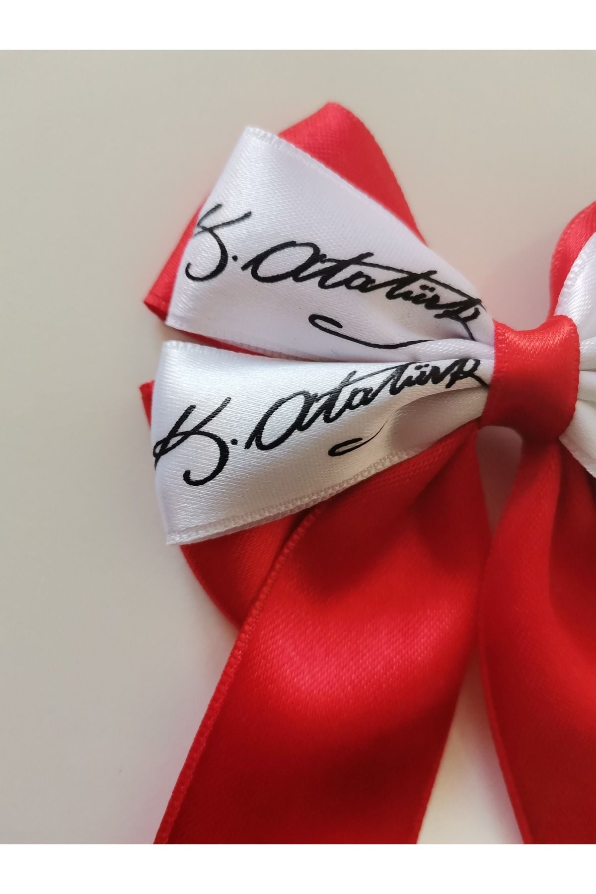 Diese Haarnadeln mit Clip, die sich durch ihr besonderes Design mit Atatürks Unterschrift sowie den Daten 29. Oktober und 10. November auszeichnen, werden für Kinder unverzichtbar sein.; Sie sind als stilvolles und bedeutungsvolles Accessoire konzipiert, das Kinder gerne tragen werden.; Diese Haarnadeln, die mit ihrem aufgedruckten Muster die Erinnerung an Atatürk tragen, werden als stilvolles Accessoire für Kinder in der Schule oder bei ihren täglichen Aktivitäten auffallen.; Diese Haarnadeln mit Clip, die sowohl langlebig als auch praktisch sind, helfen Kindern, ihre Frisur zu pflegen und erinnern sie gleichzeitig an Atatürks wichtige Daten.;