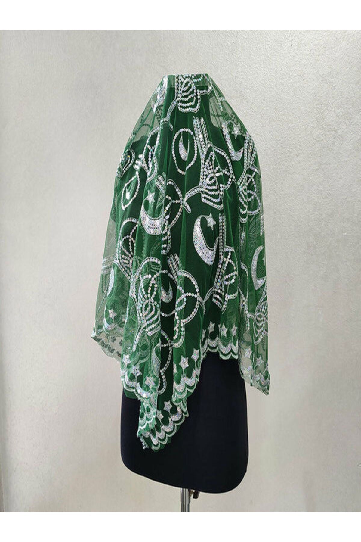 Dekorativer Schleier mit osmanischer Tughra – Grüner, traditionell gemusterter Stoff