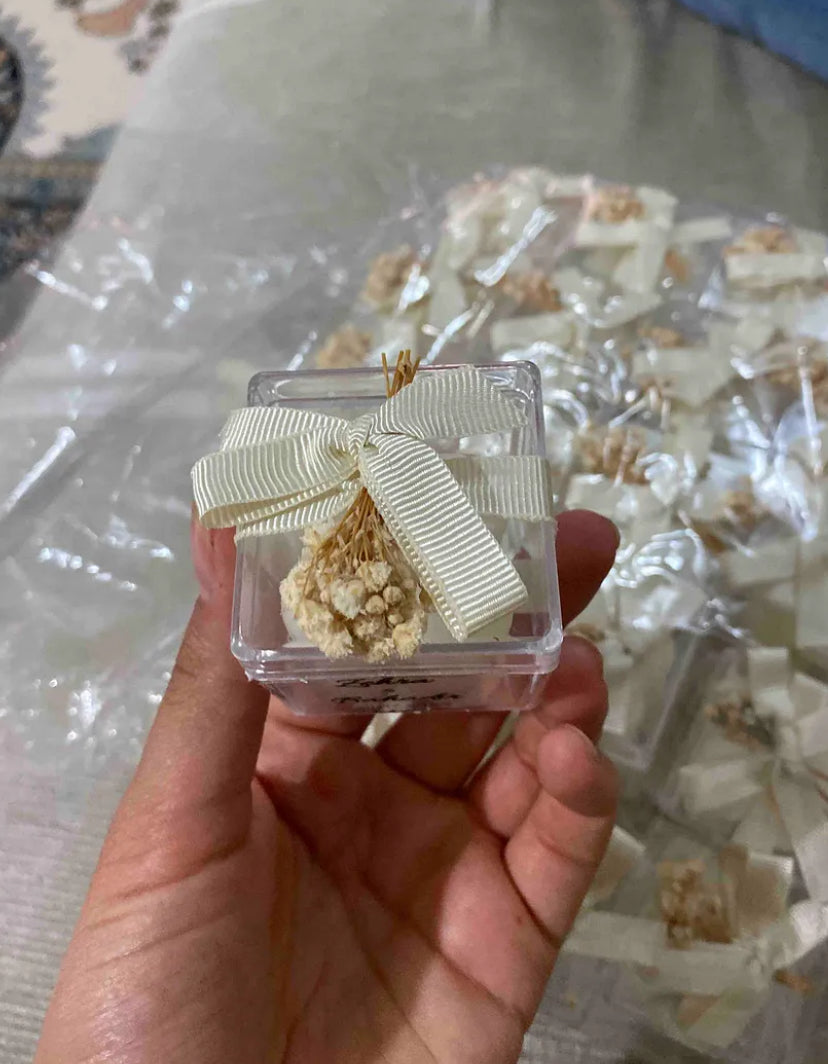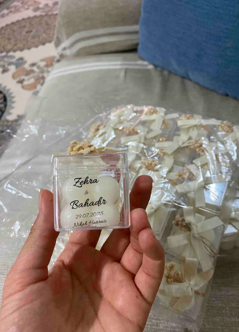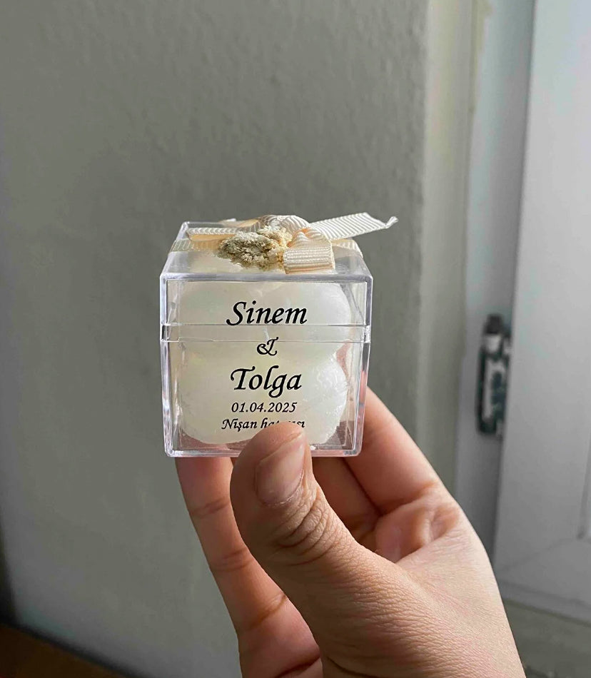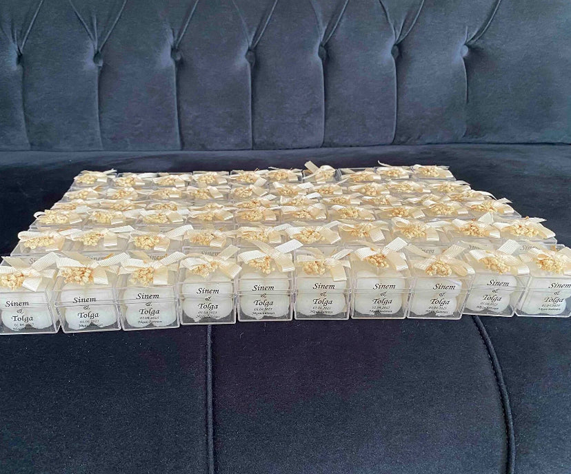 Zarif çiçek detayları ve krem kurdelesiyle süslenen lüks bubble mumlar, nikah şekeri ve özel gün hediyeliği olarak ideal bir tercihtir. 15’li set halinde sunulan bu şık tasarımlar; düğün, nişan, söz ve kına organizasyonlarında misafirlerinize anlamlı bir hatıra sunar. Dekoratif sunumu ve el yapımı estetiğiyle fark yaratan bu mumlar, toplu etkinliklerde şıklığı ve kaliteyi bir arada sunar.