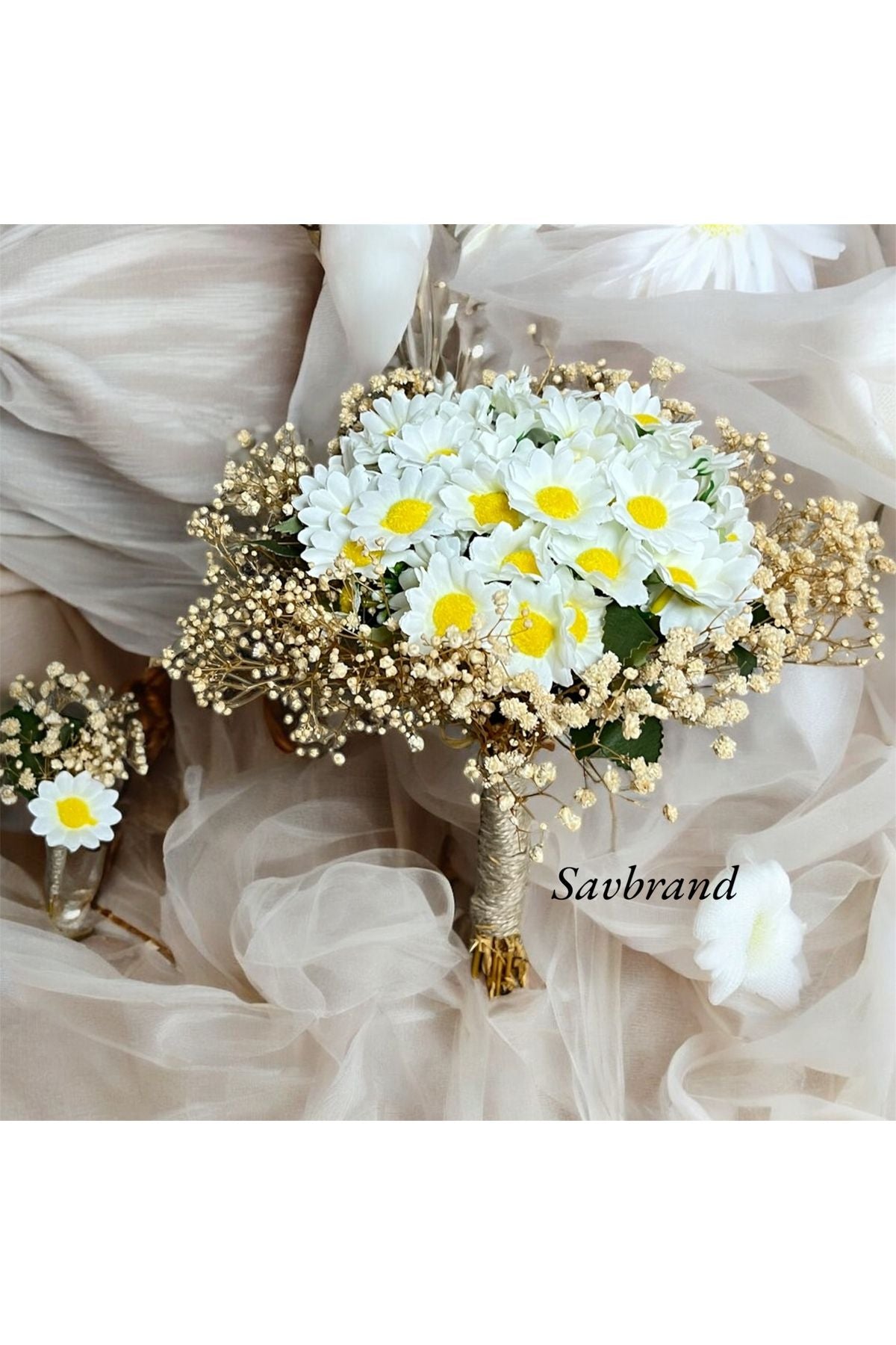 Daisy and Chips Brautstrauß und Boutonniere-Set, Daisy and Chips Brautstrauß