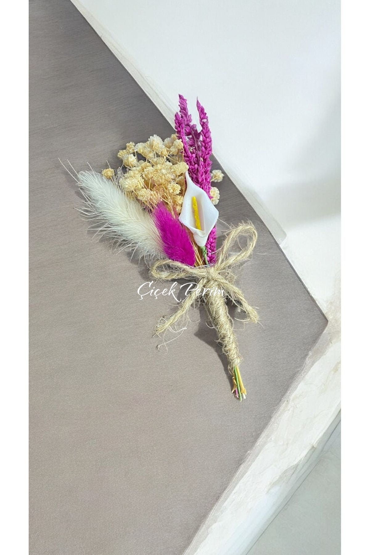 - Dieses Anstecksträußchen für den Bräutigam, das dank seiner Individualisierbarkeit bis ins kleinste Detail zu etwas Besonderem für Sie wird, wird an Ihrem Hochzeitstag Ihre Eleganz und Ihren Stil widerspiegeln.