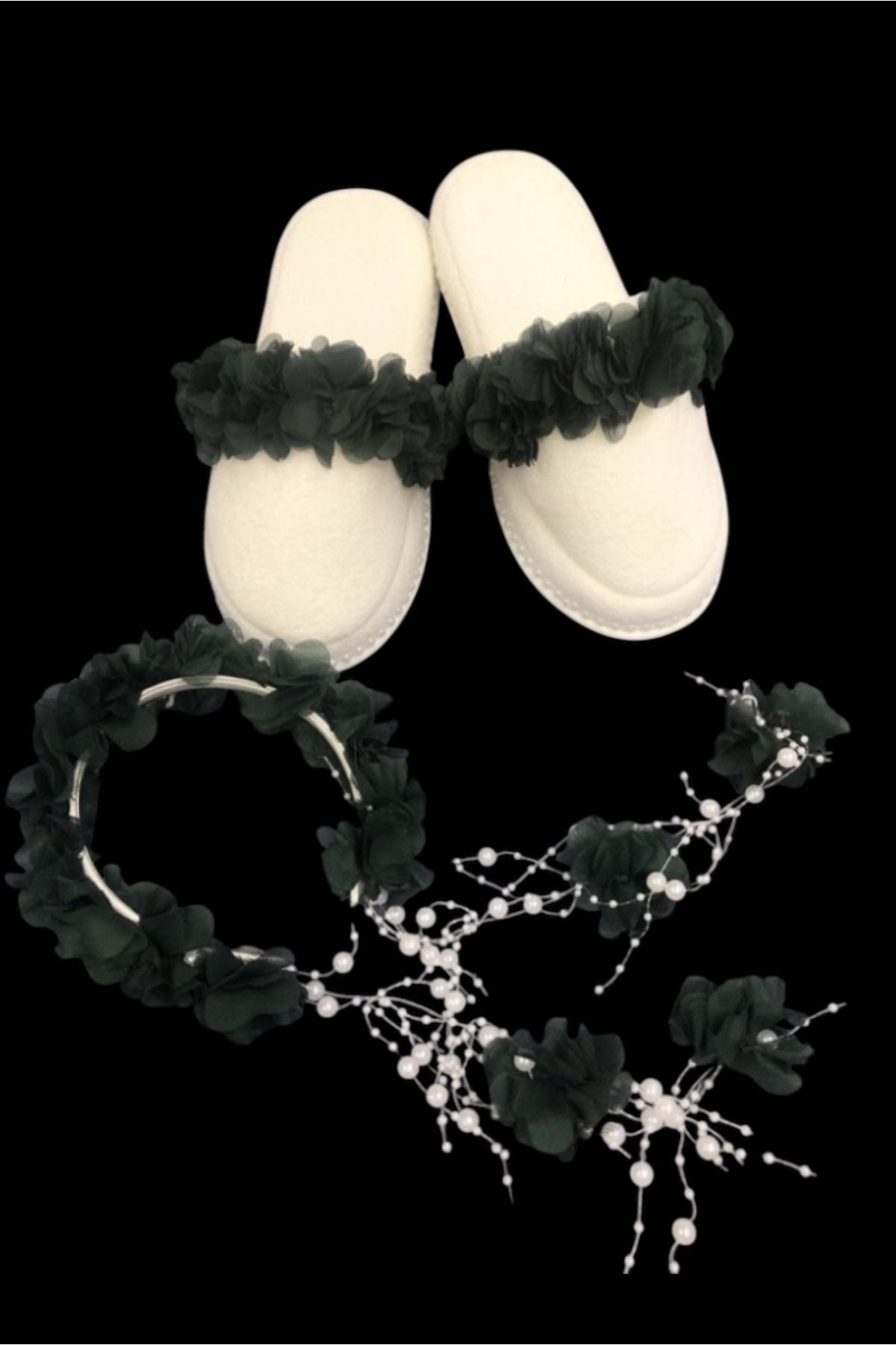 Hochwertiges Set aus Umstandspantoffeln und Krone – Laserschnitt mit grünem Blumendetail