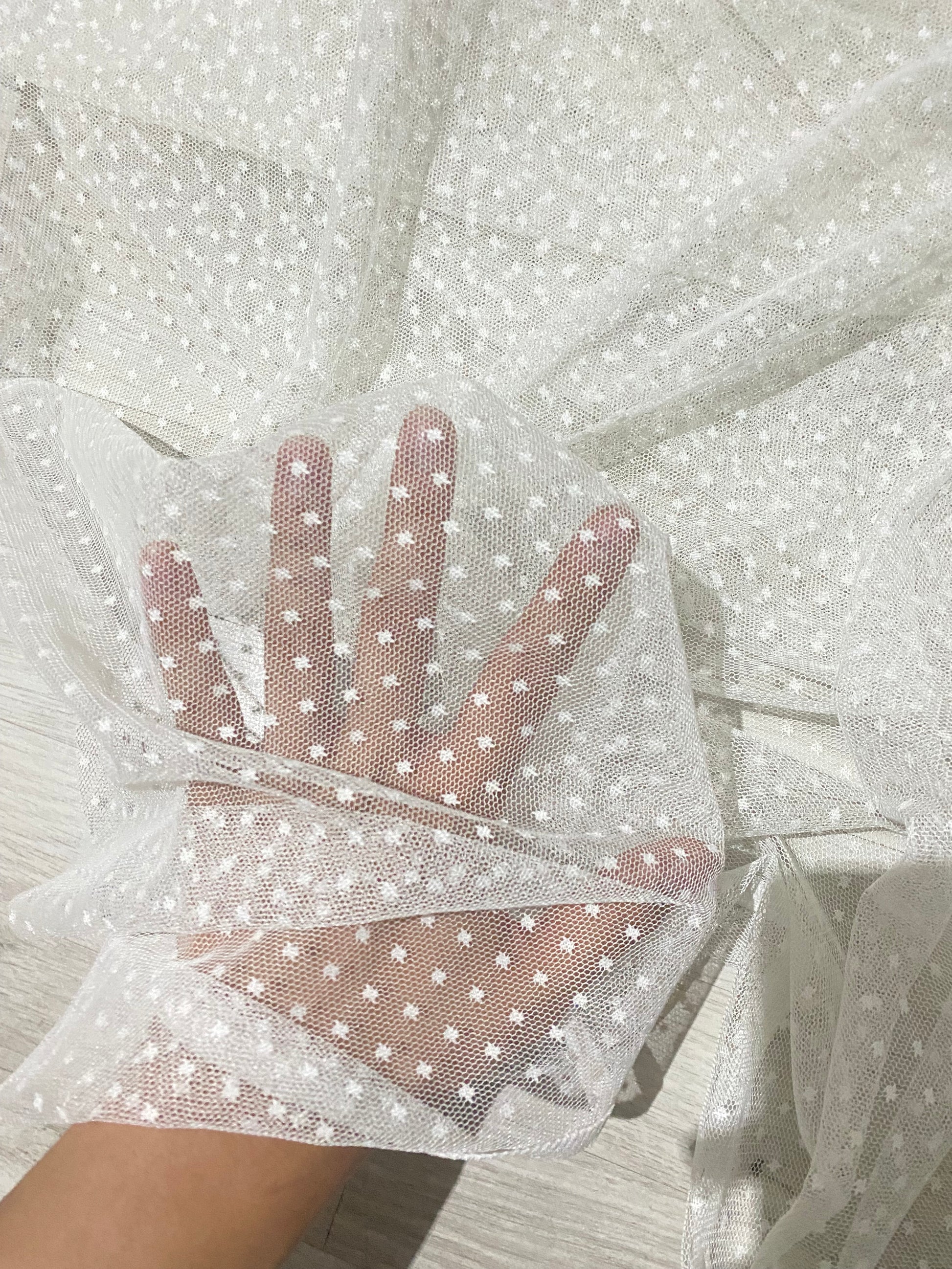 Puantiyeli Beyaz Tül Kumaş – 150cm En, 50cm Boy – Gelin Eldiveni ve Violet Yapımı İçin