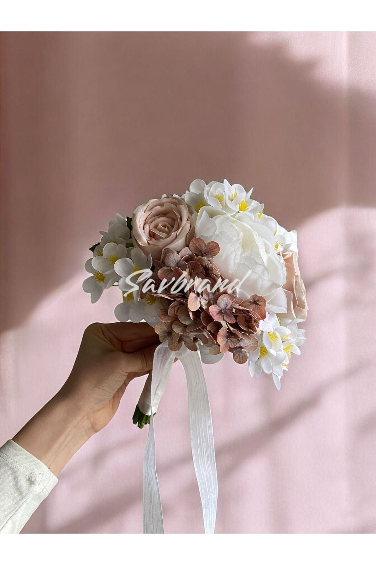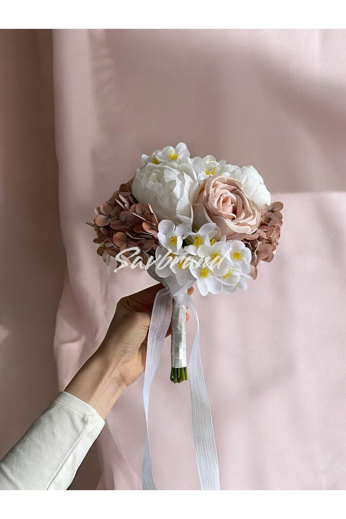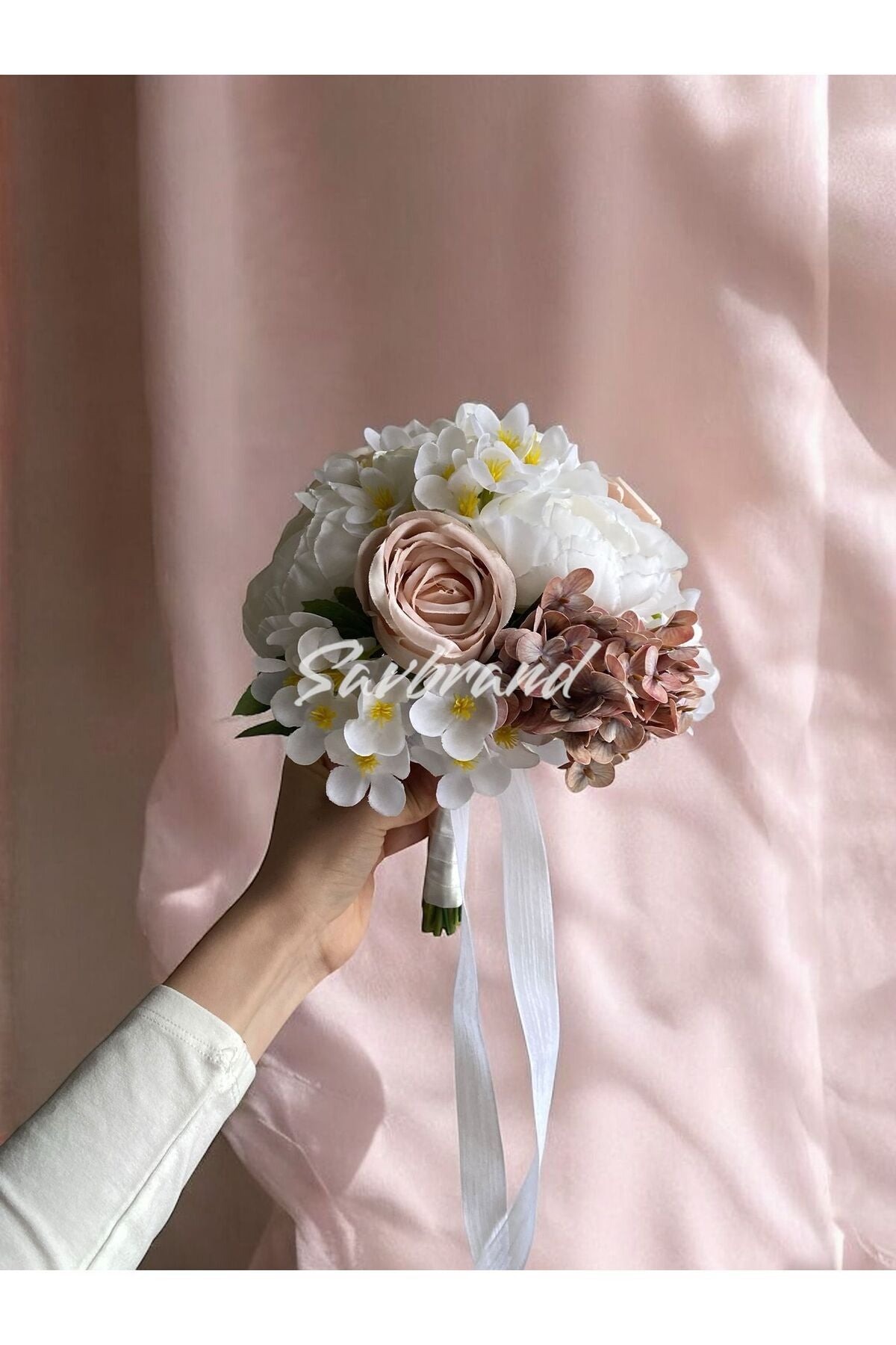 Brautstrauß aus Pfingstrose, Hortensie und Rose