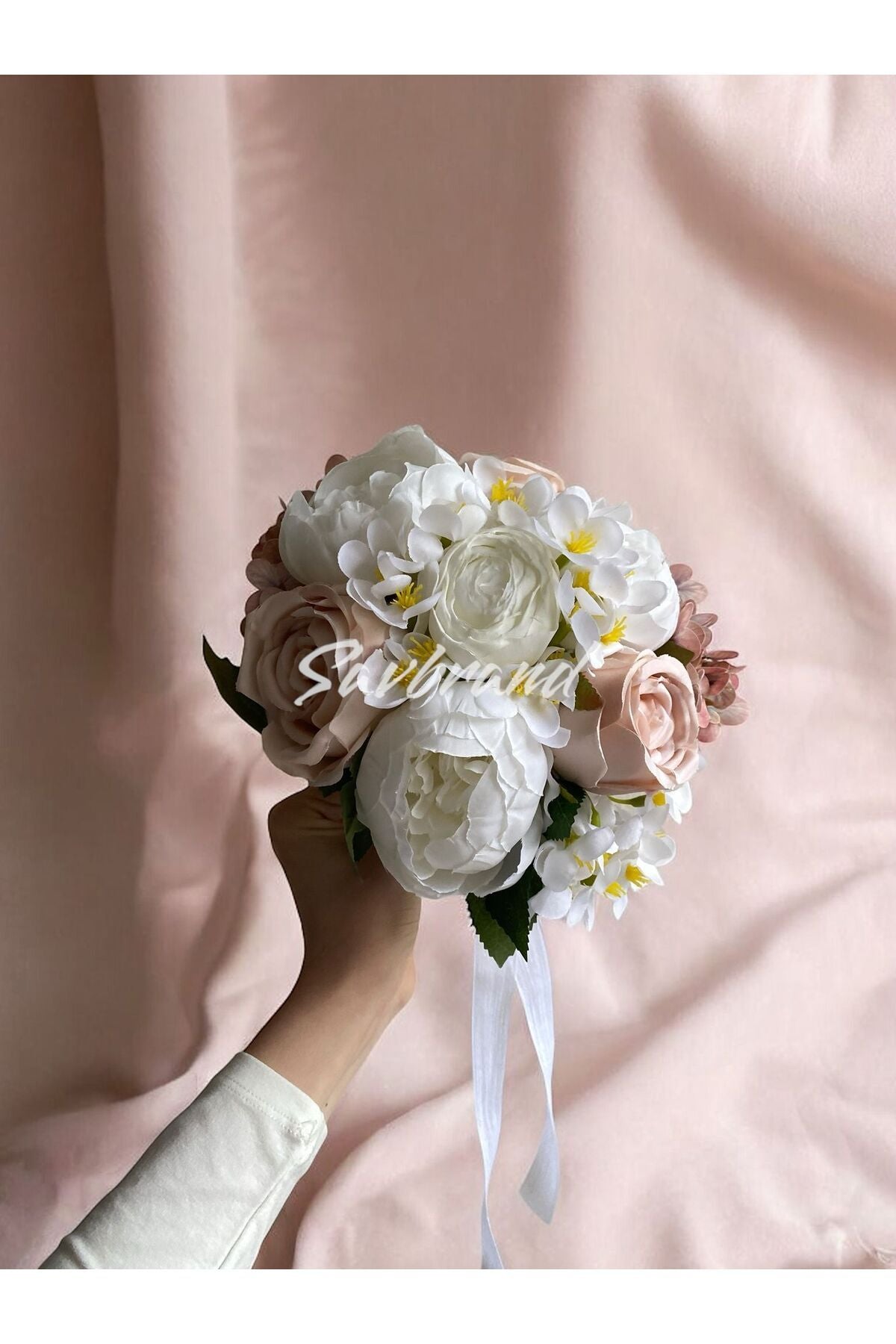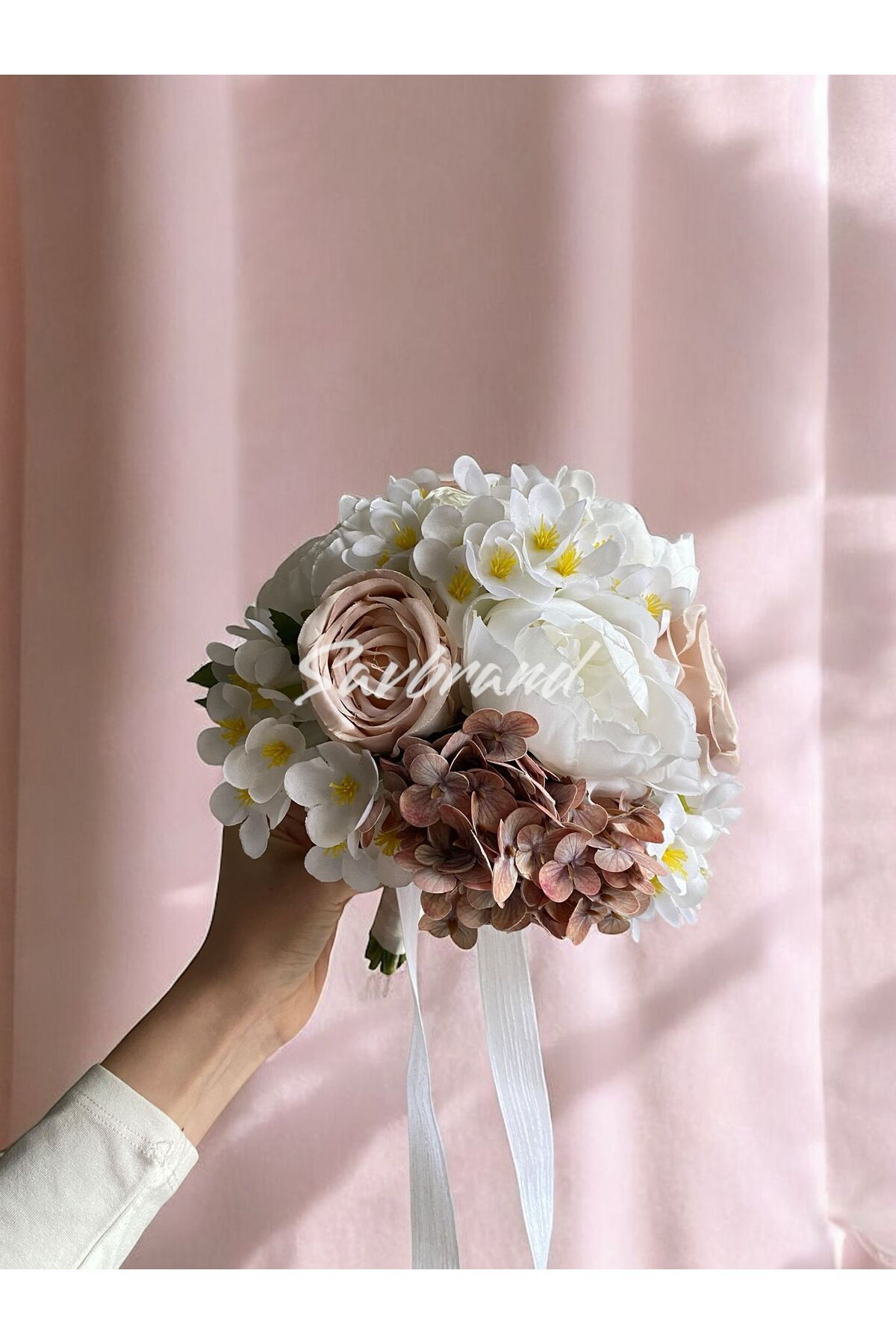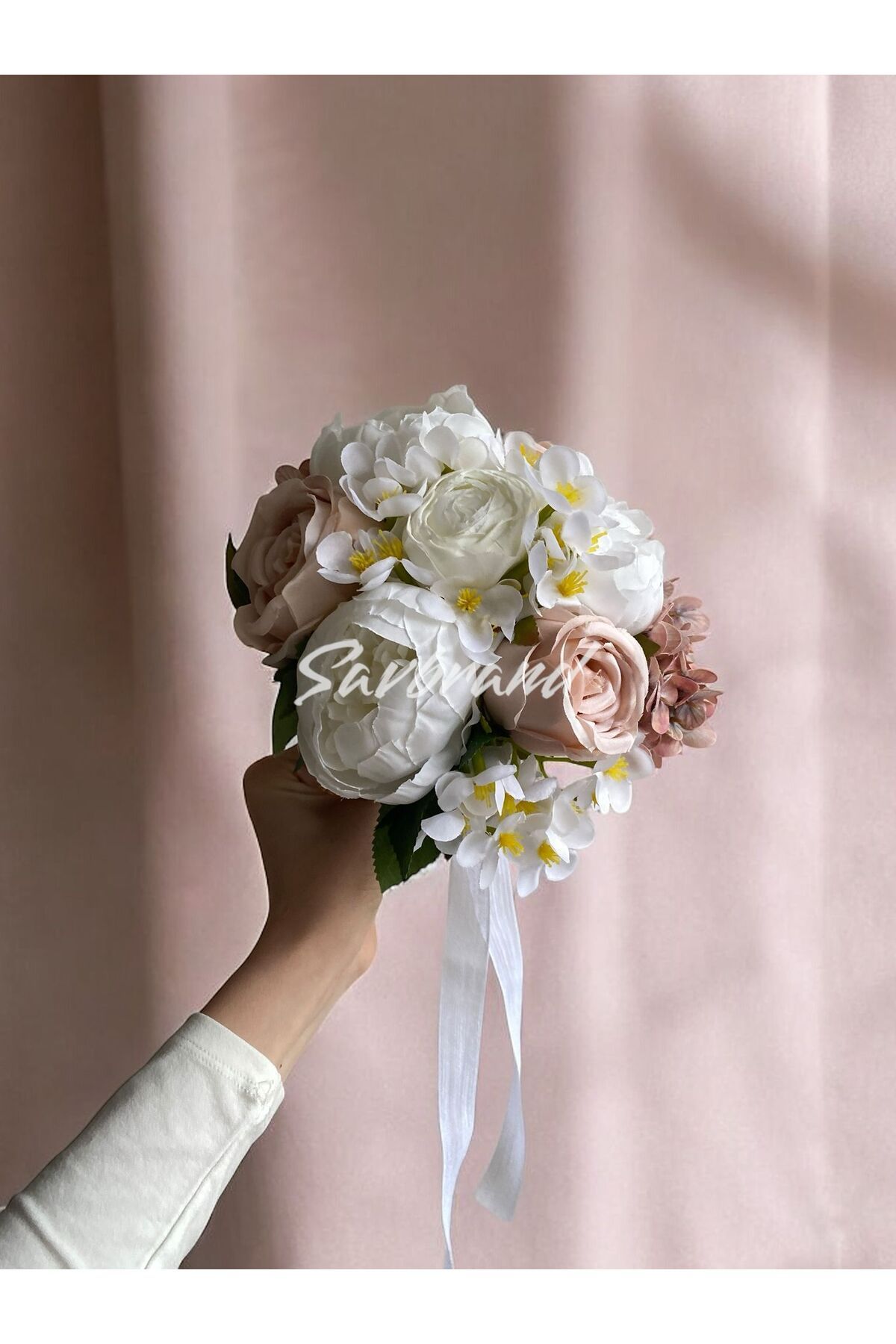 Brautstrauß aus Pfingstrose, Hortensie und Rose