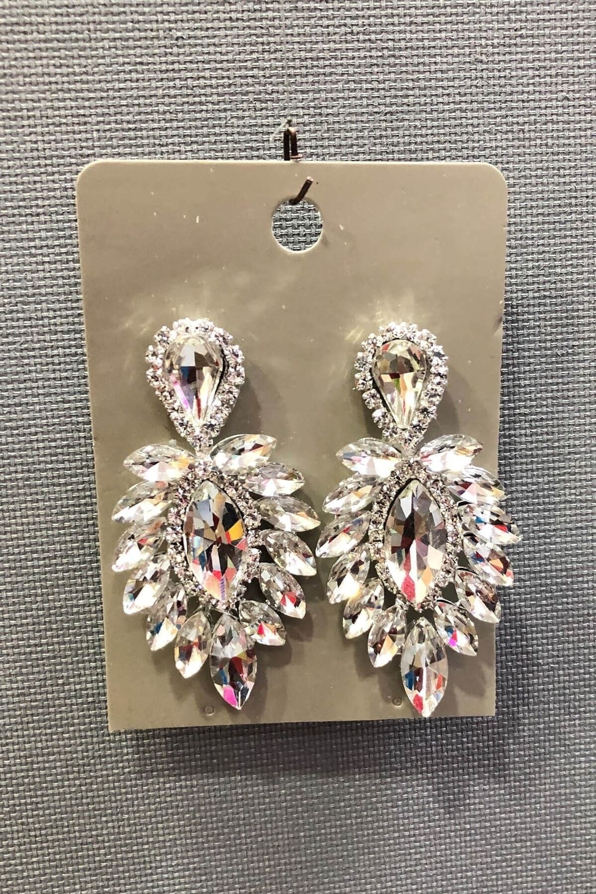 Ovale weiße Ohrringe mit klaren Kristallsteinen