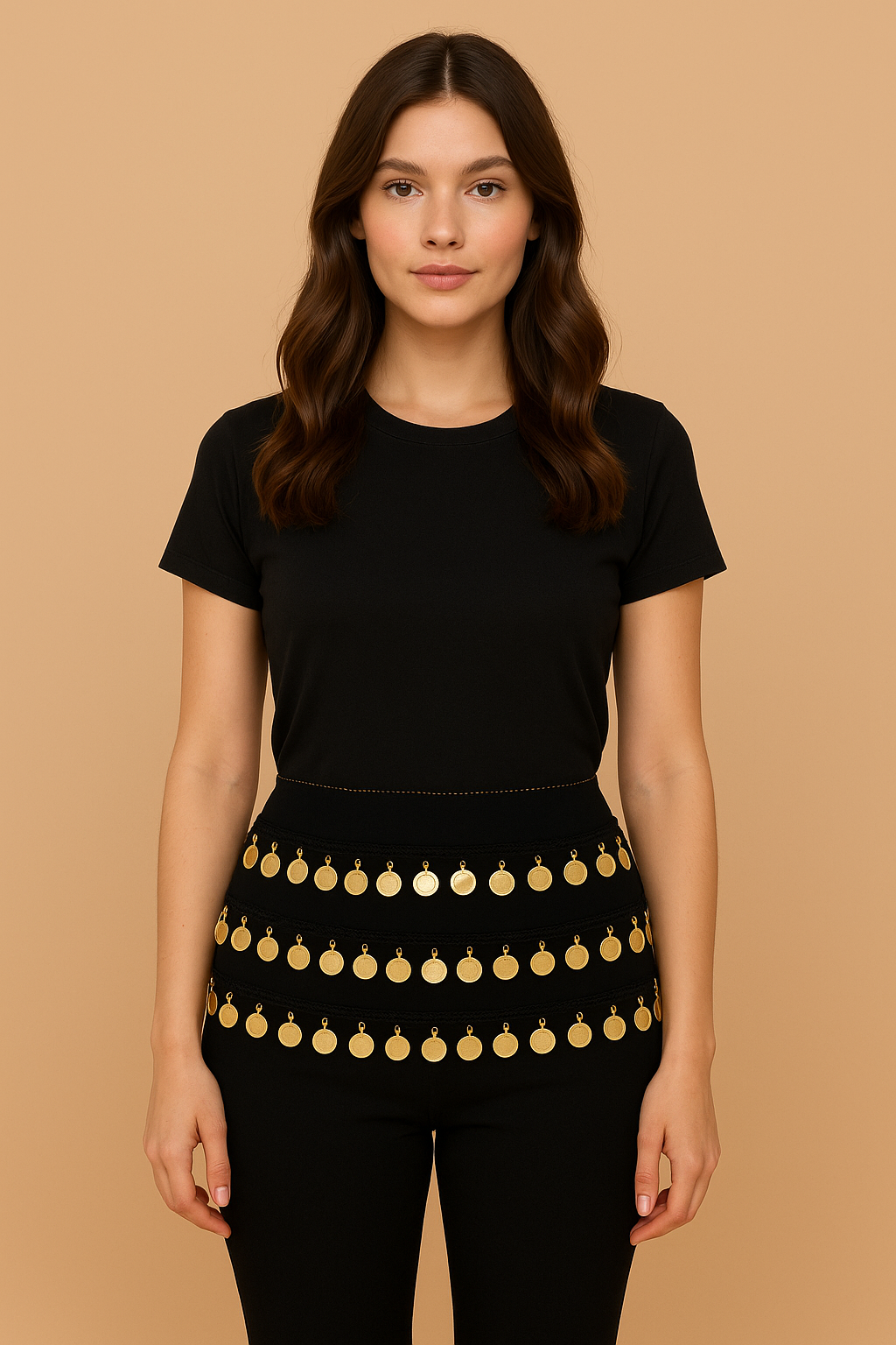 Ritmi hisset, sahnede parılda! Siyah Şakira kemeri ile kına ve düğün danslarınıza enerji ve ışıltı katın.