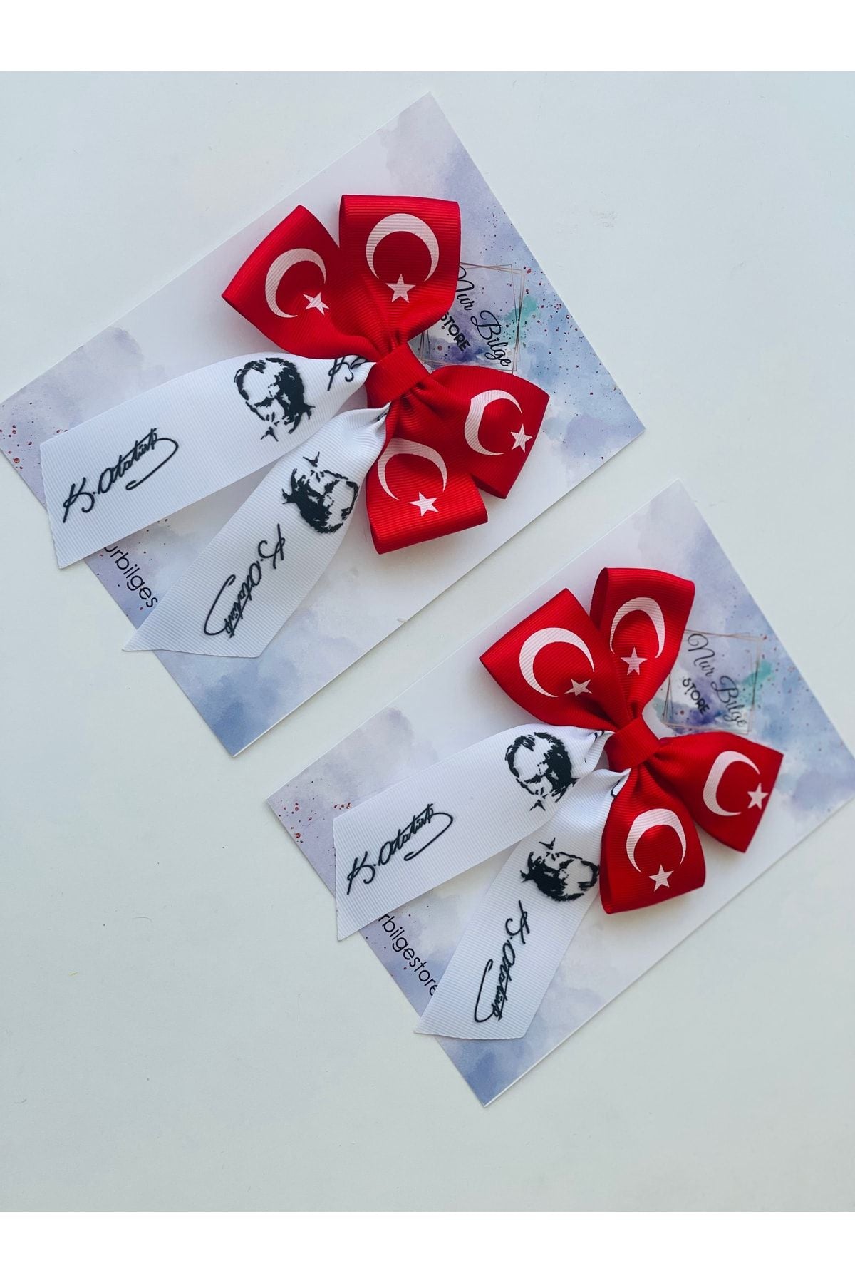 Schnalle mit türkischer Flagge, 2 Stück, 23. April – 19. Mai, Atatürk-Signatur, türkische Flagge