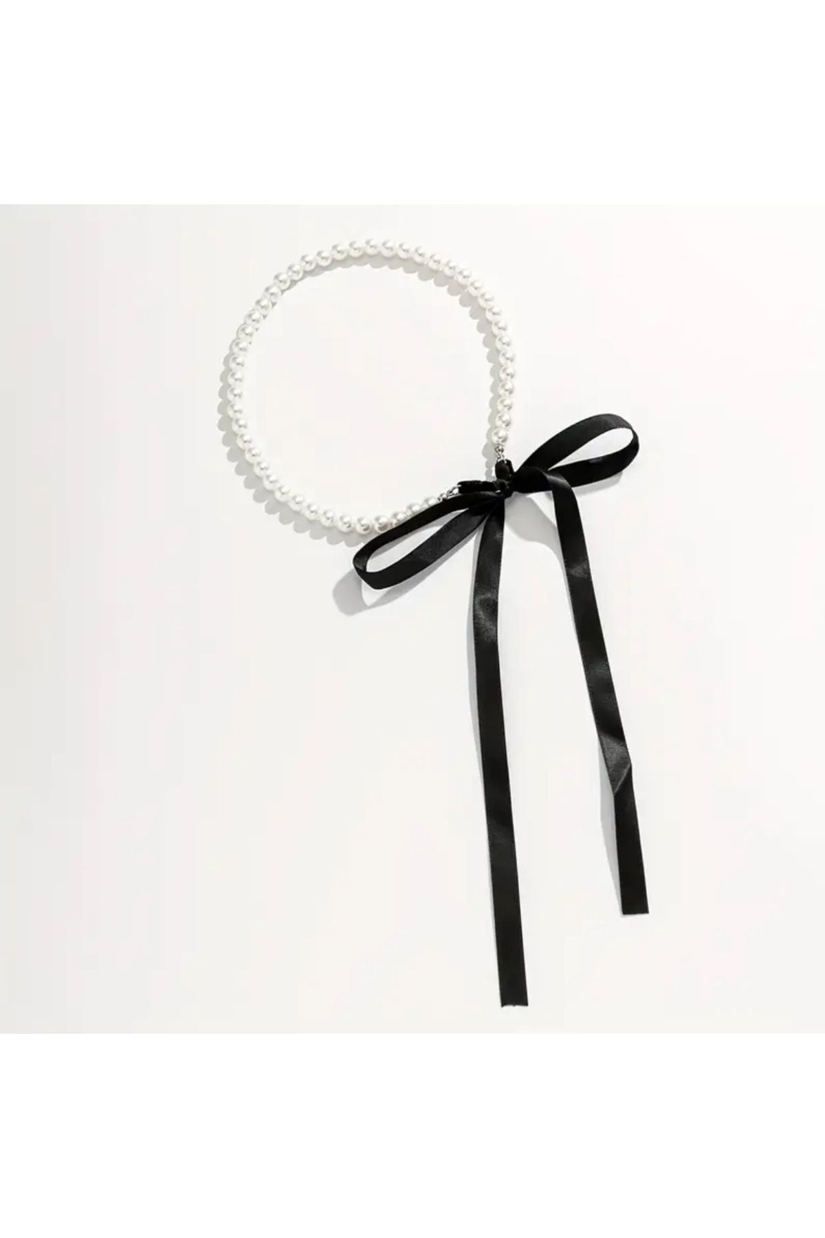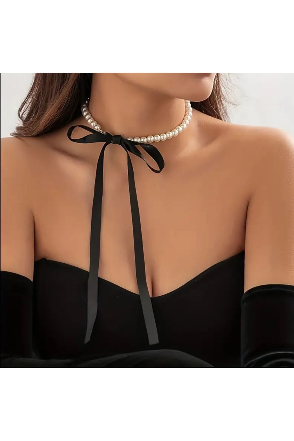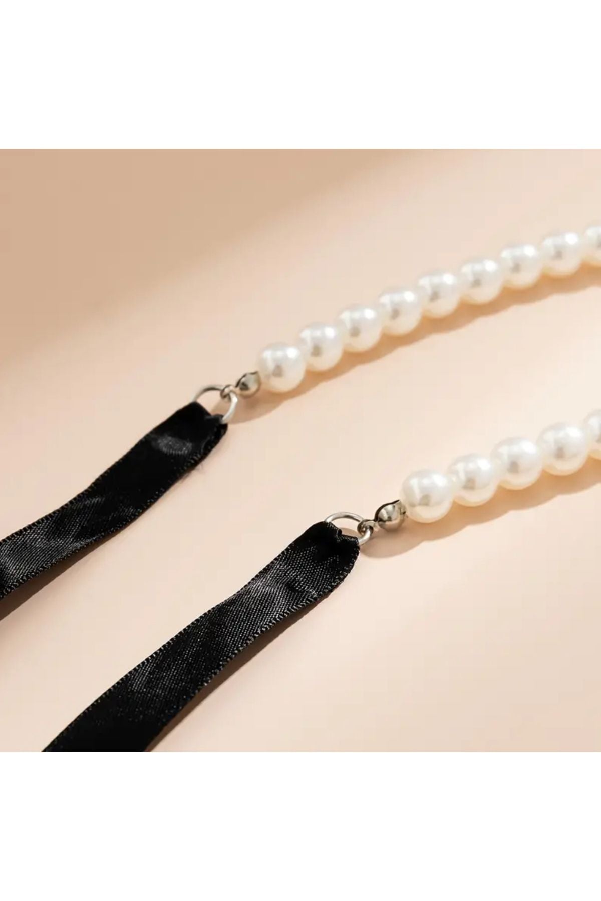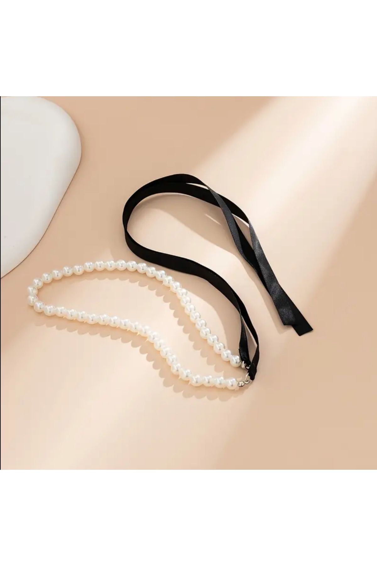 Vintage Halsband Lange Perlen Satin Design Kette Halskette Spitze Satin mit Perlenkette