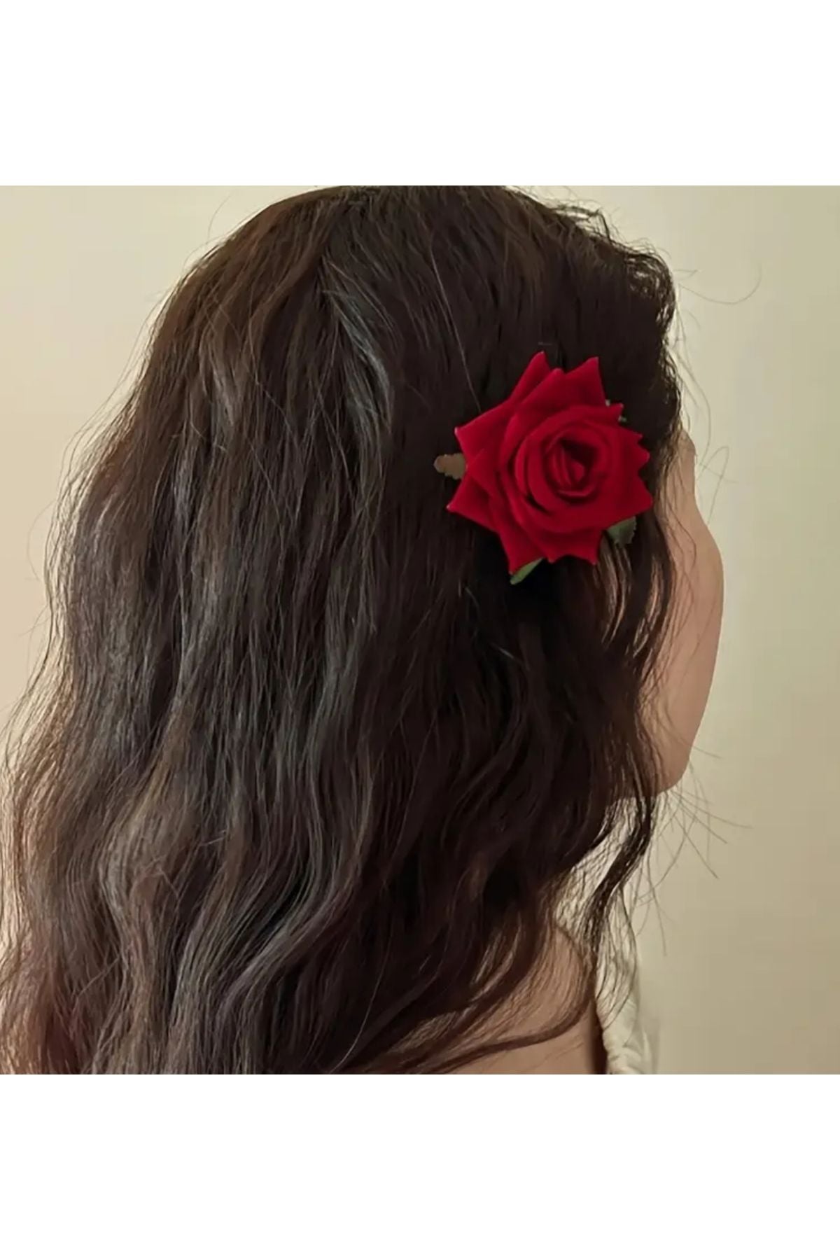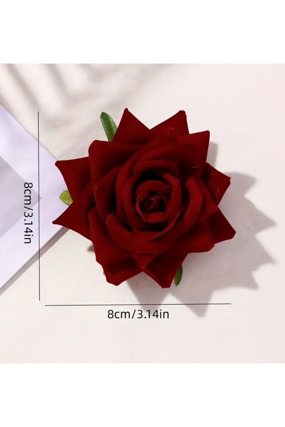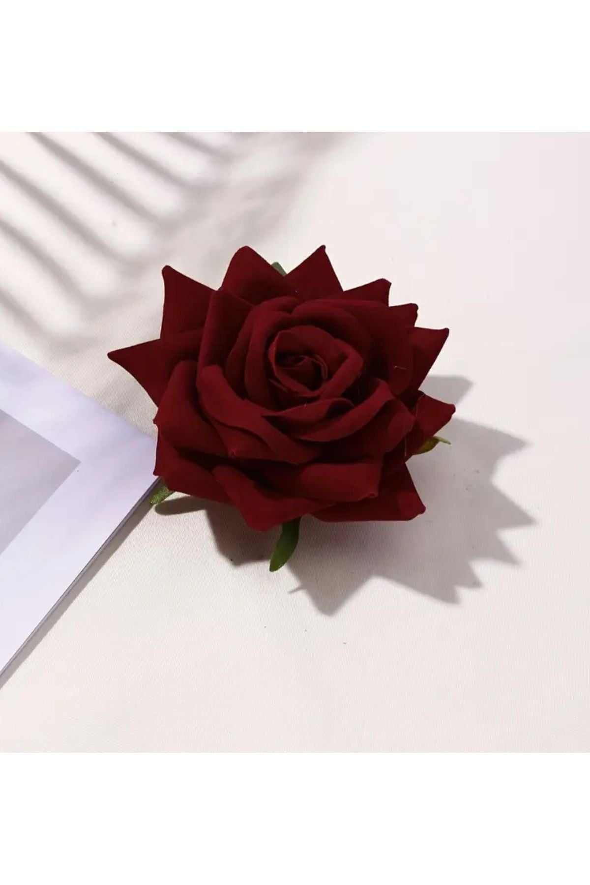 1 Adet Bordo Kadife Gül Saç Tokası , Vintage Bordo Kadife Güllü Saç Tokası
