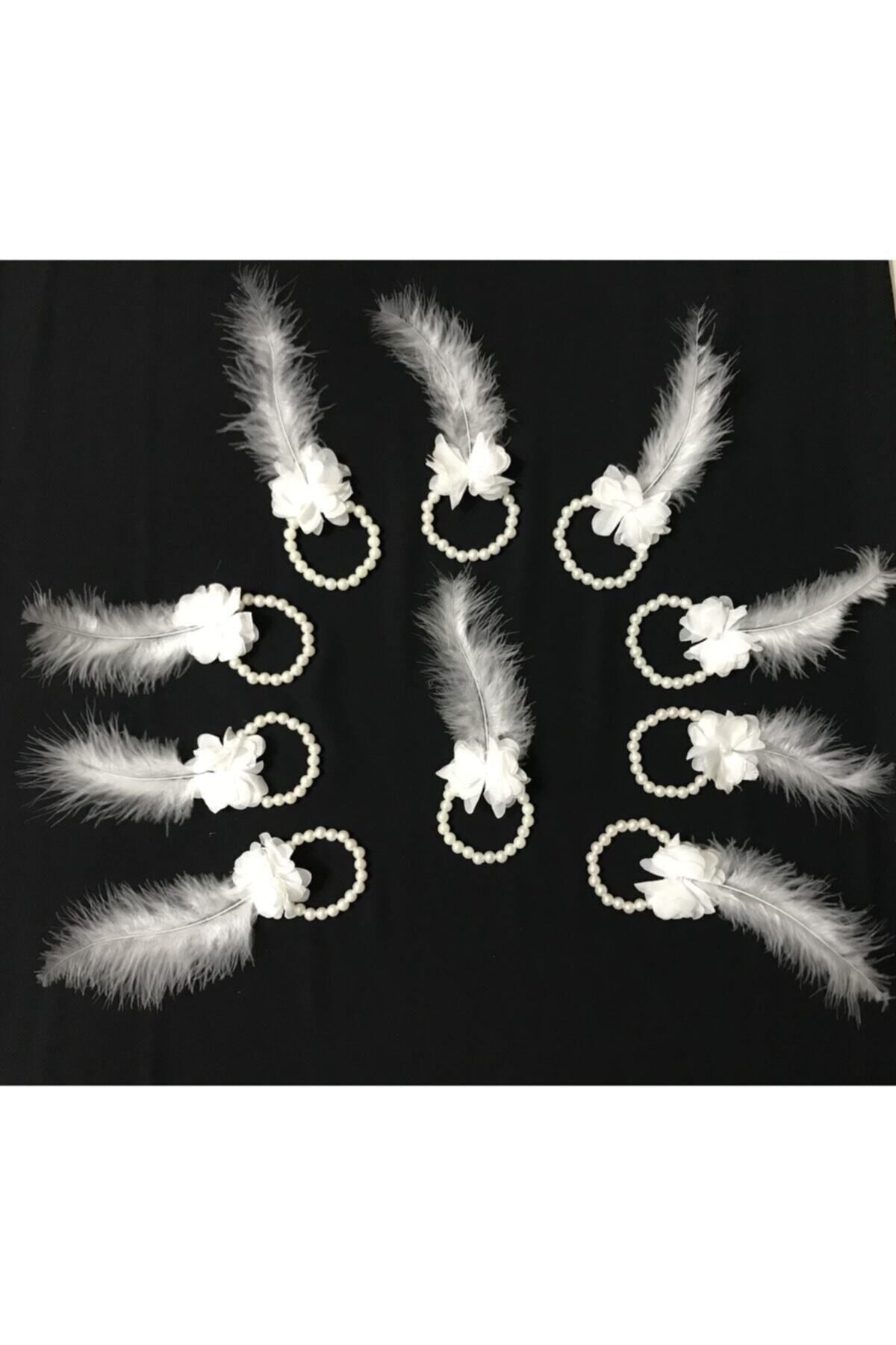 10 Adet Incili Tüylü Nedime Bilekliği Beyaz Kına Gecesi Seti