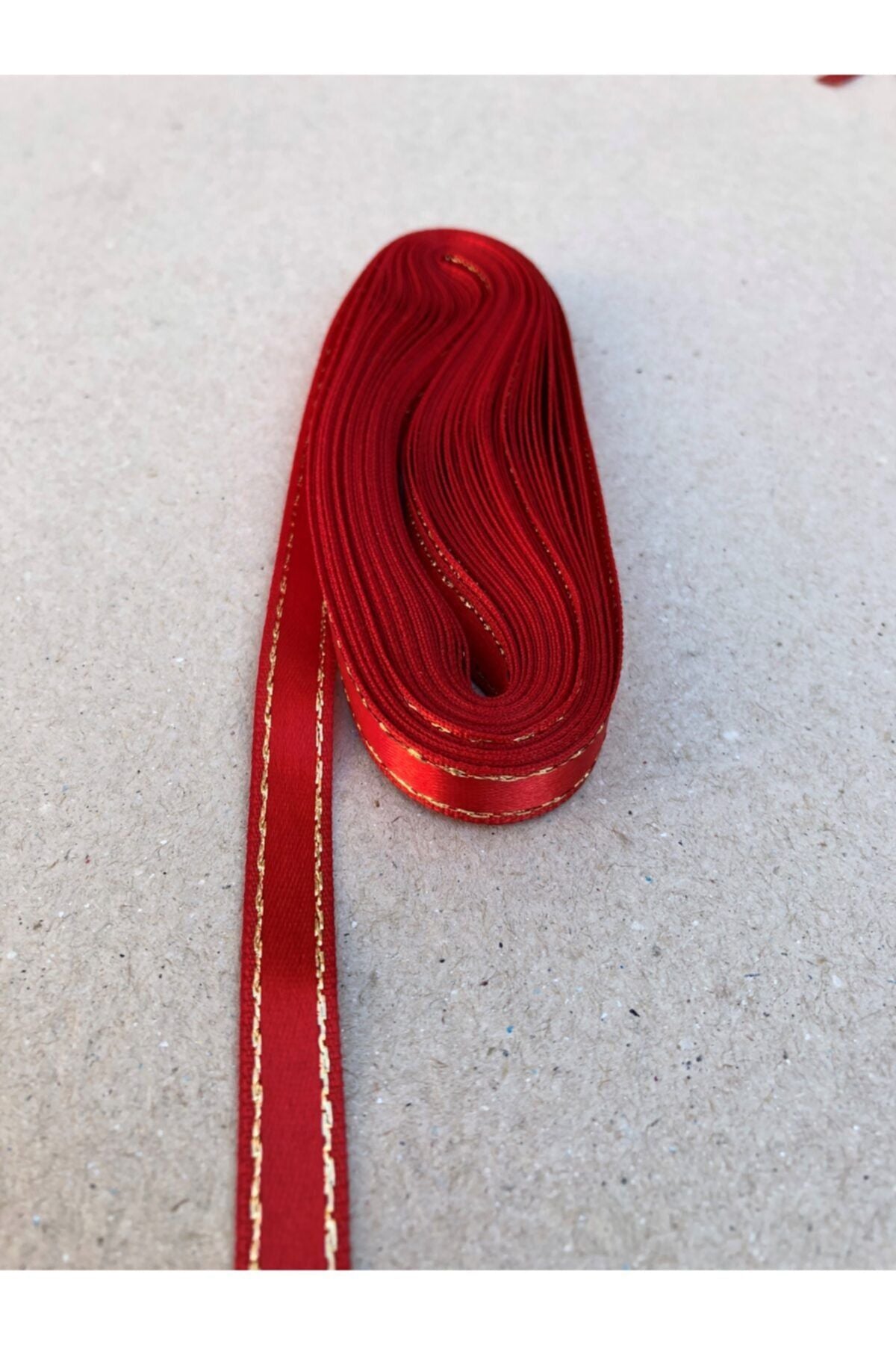 10 Metre Kırmızı Saten Kurdele Sim Şeritli (1 cm En)