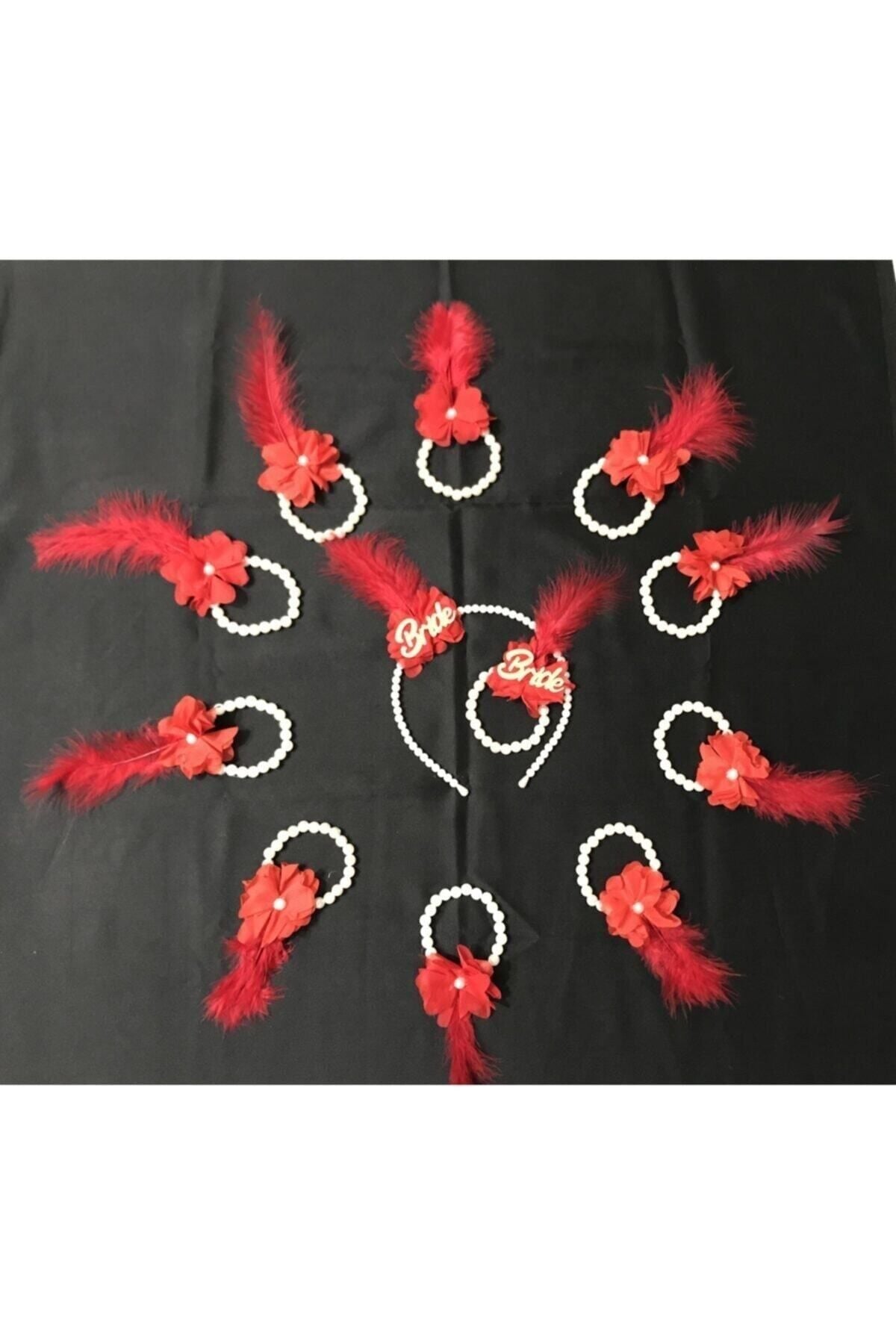 10 adet incili tüylü lazer çiçek bileklik ve incili taçlar gönderilmektedir. ; ürünlerimiz en yüksek kalite, A kalitedir. ; Çiçeklerimiz lazer çiçekten oluşmaktadır. ; Bilekliklerimiz inci bilekliktir ve esnek yapıya sahiptir. ; Her bilek boyuna uygundur. ; Taçlarımız inciden yapılmıştır ve sıkma yapmaz. ; Düğün, nikah, kına eğlencesi, konser, mezuniyet, festival ve çeşitli eğlence alanları için kullanıma uygundur. ; Renk seçenekleri mevcuttur.;