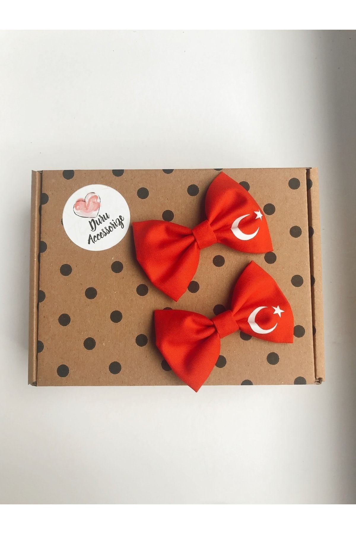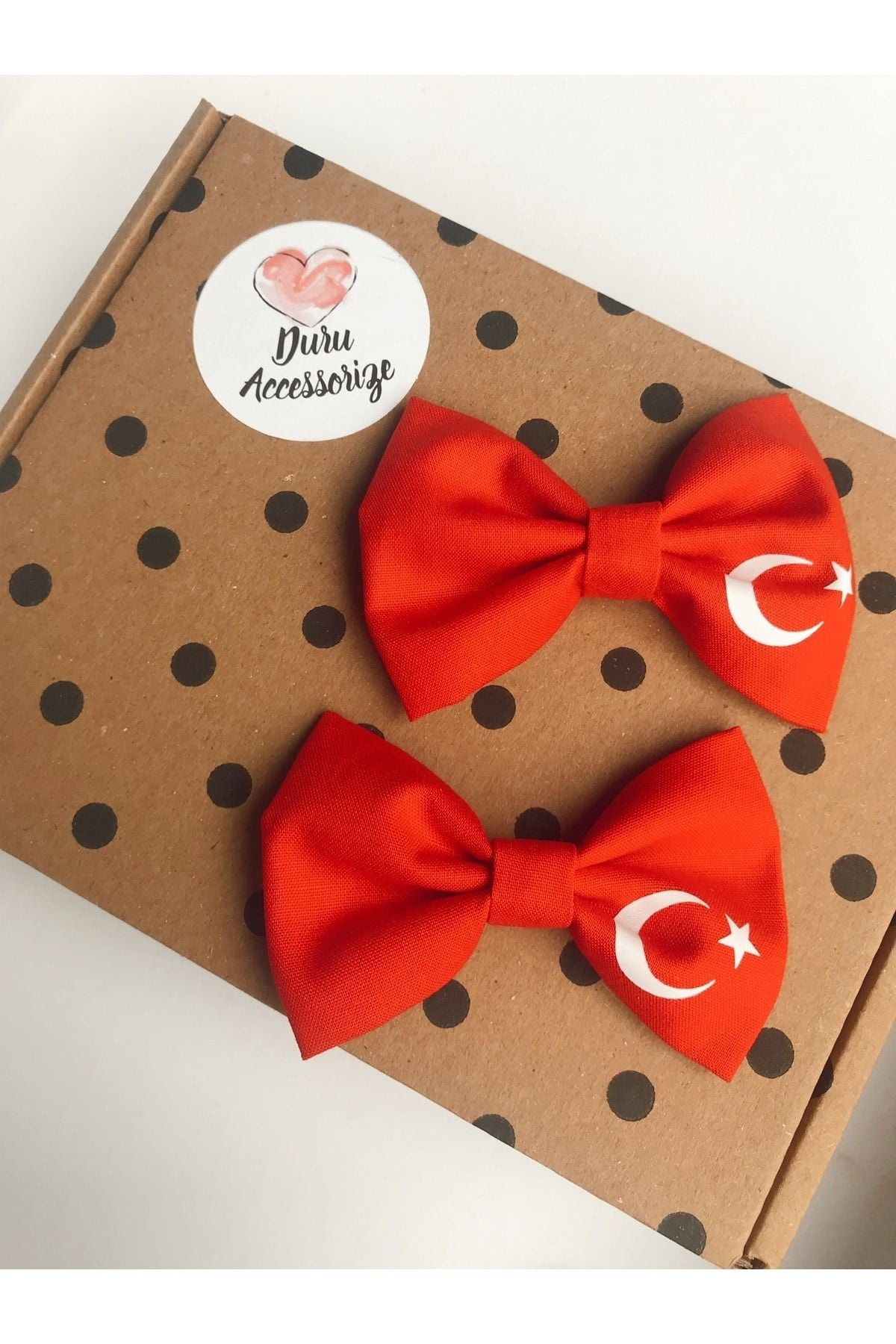 29 Ekim Türk Bayraklı Baskılı Kumaş Klips Toka 2li