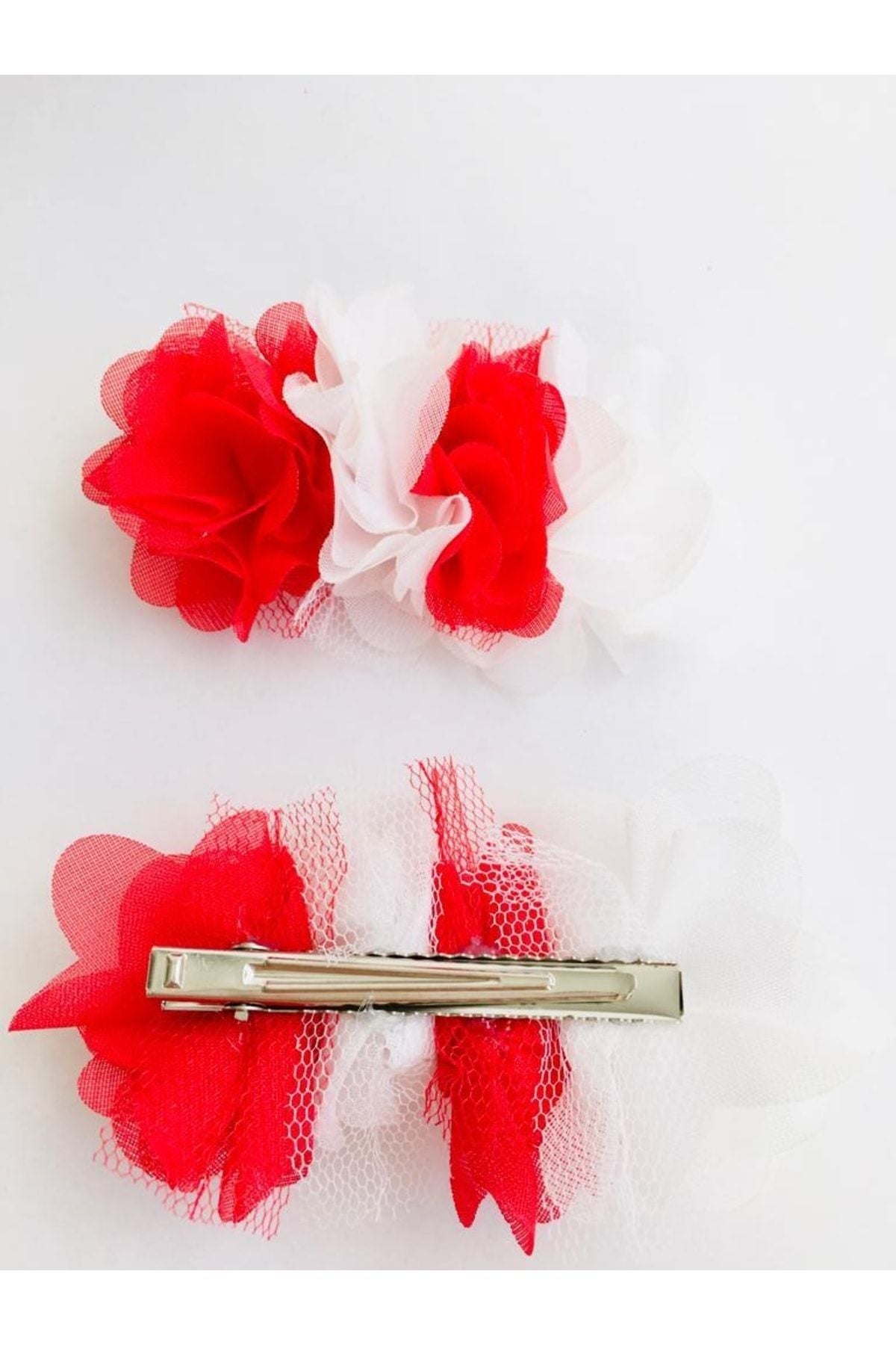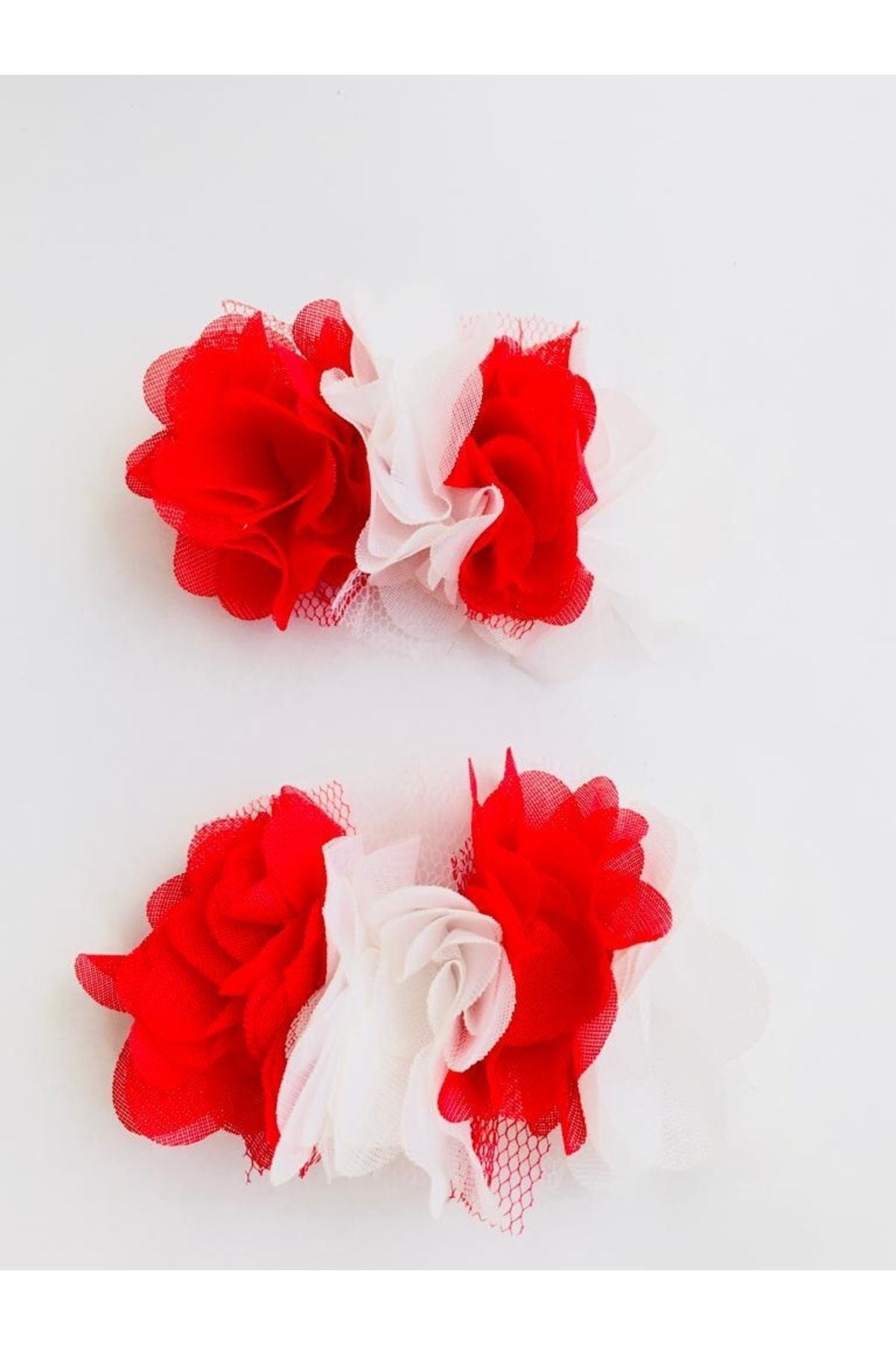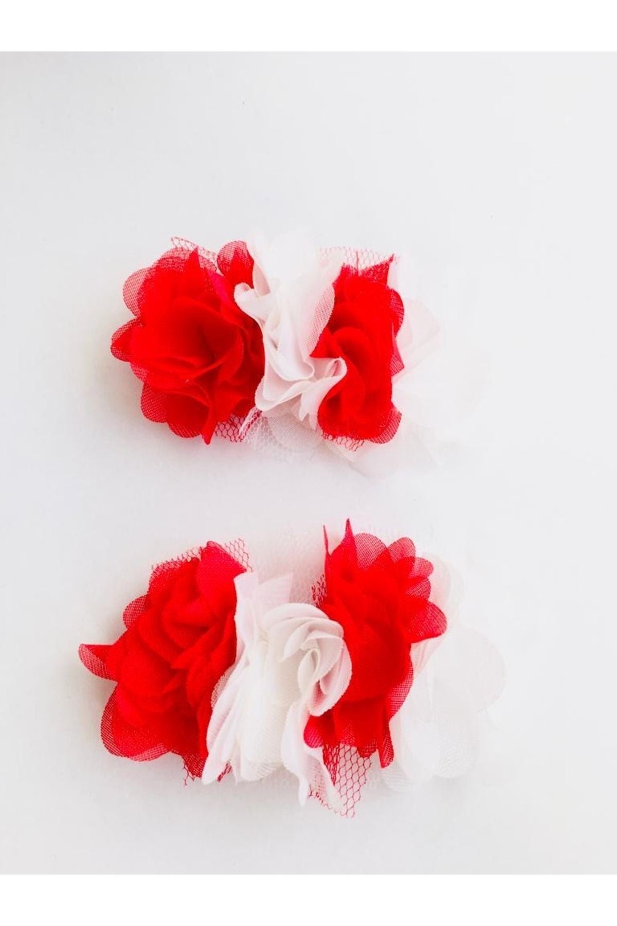 2'li Kırmızı Beyaz Şifon Çiçekli Frida Kadın Ve Kız Çocuk 23 Nisan 29 Ekim Bayram Kutlama Okul Toka