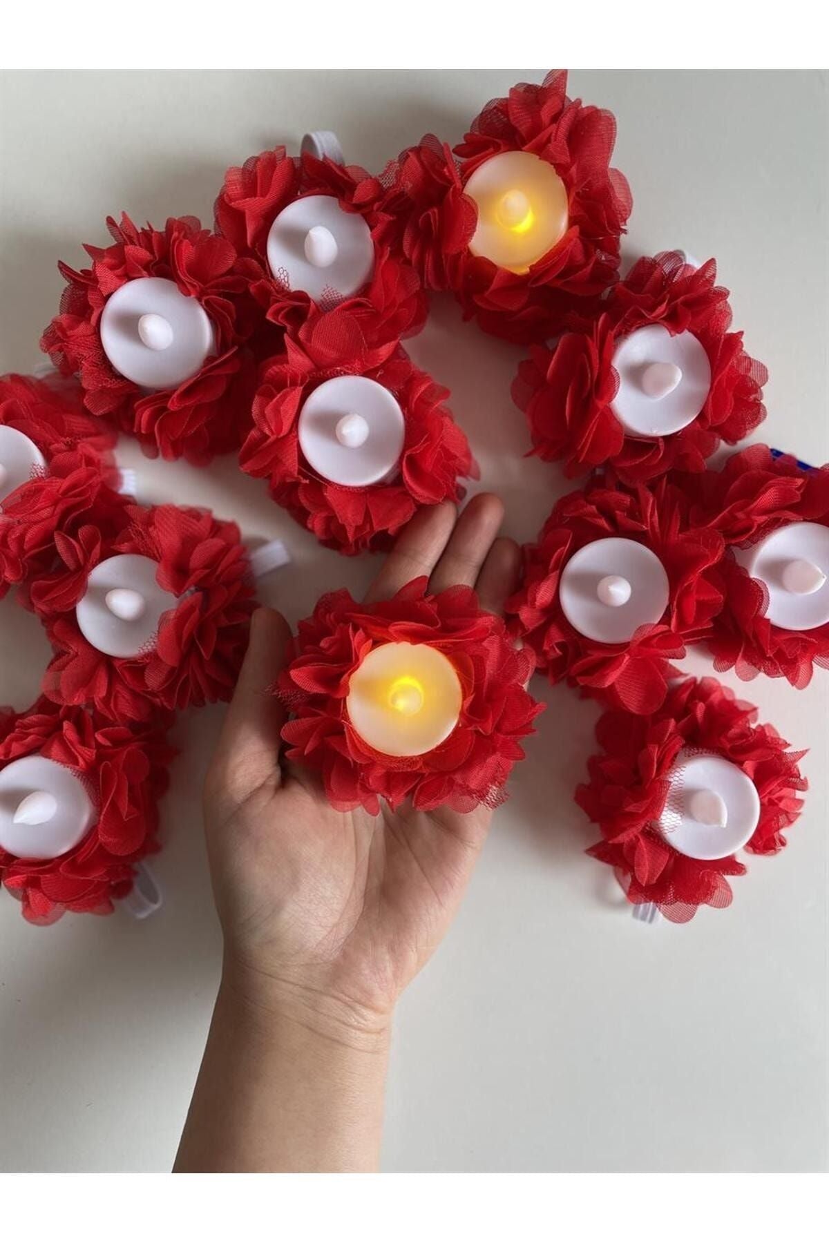 6'lı Ledli El Mumu ( Kırmızı Süslemeli )