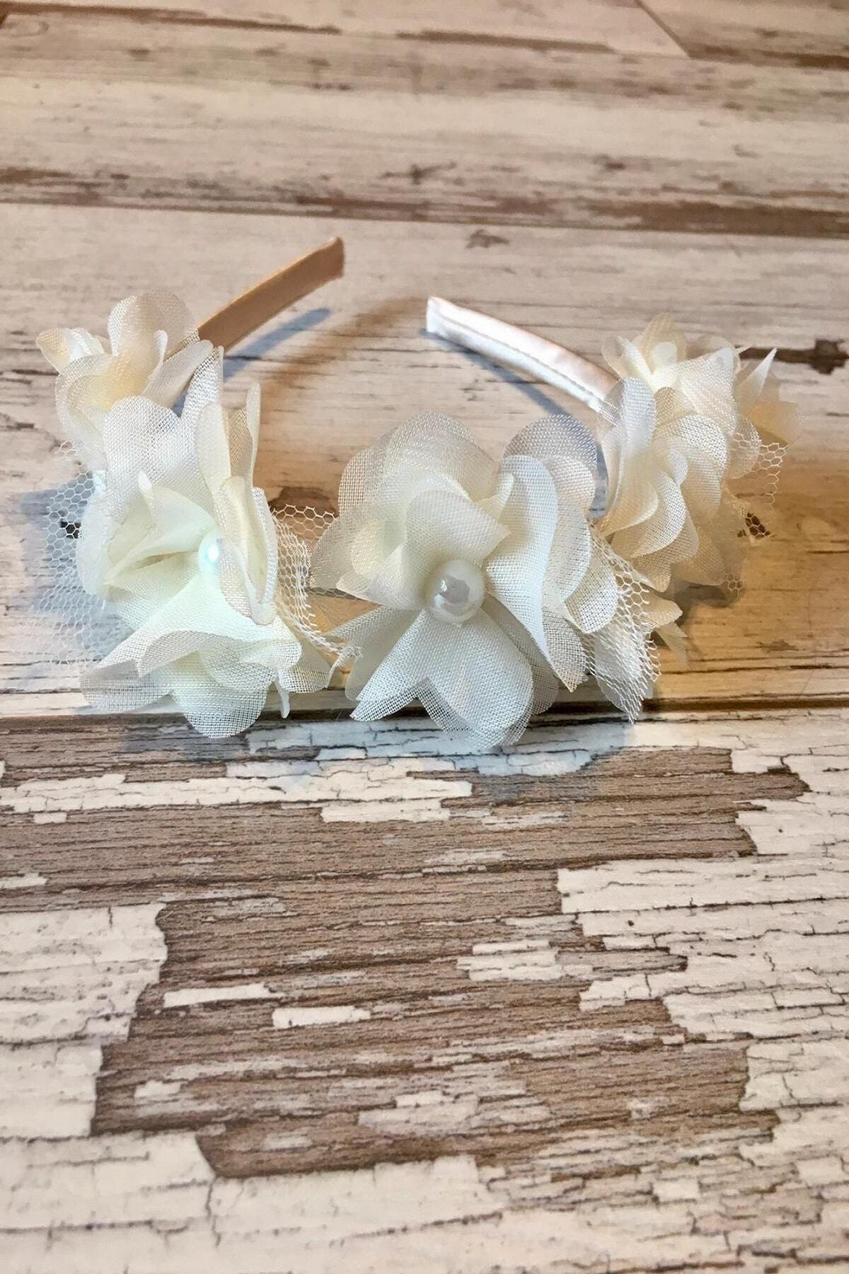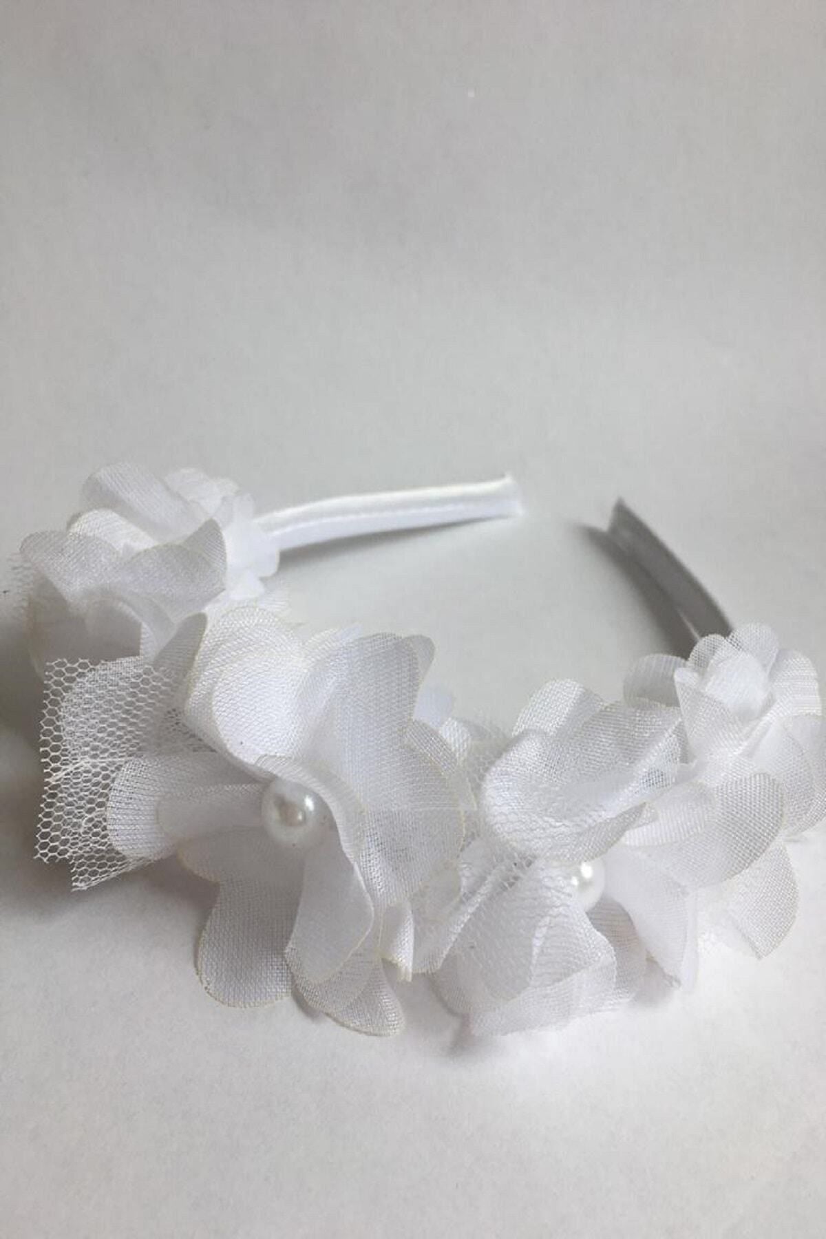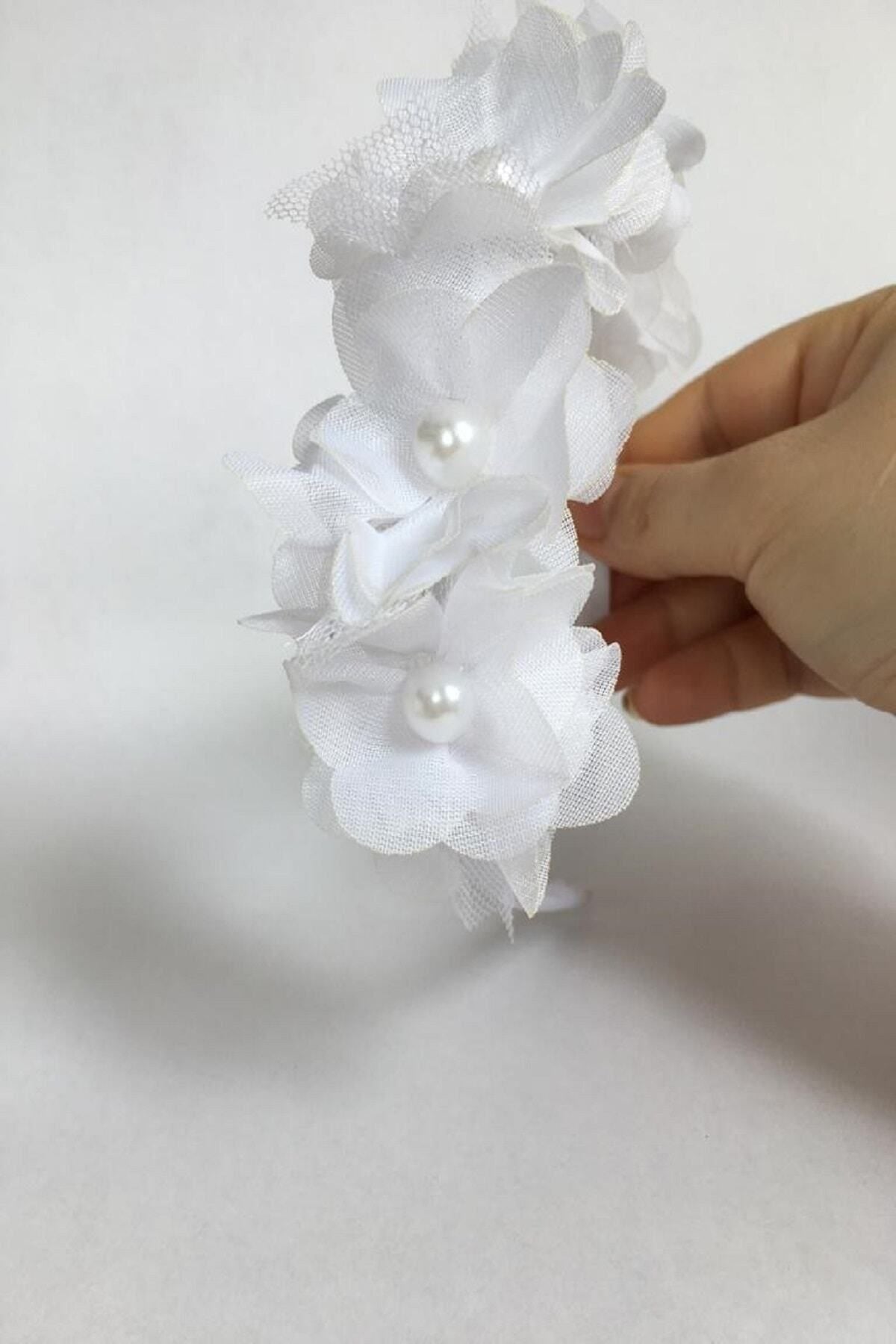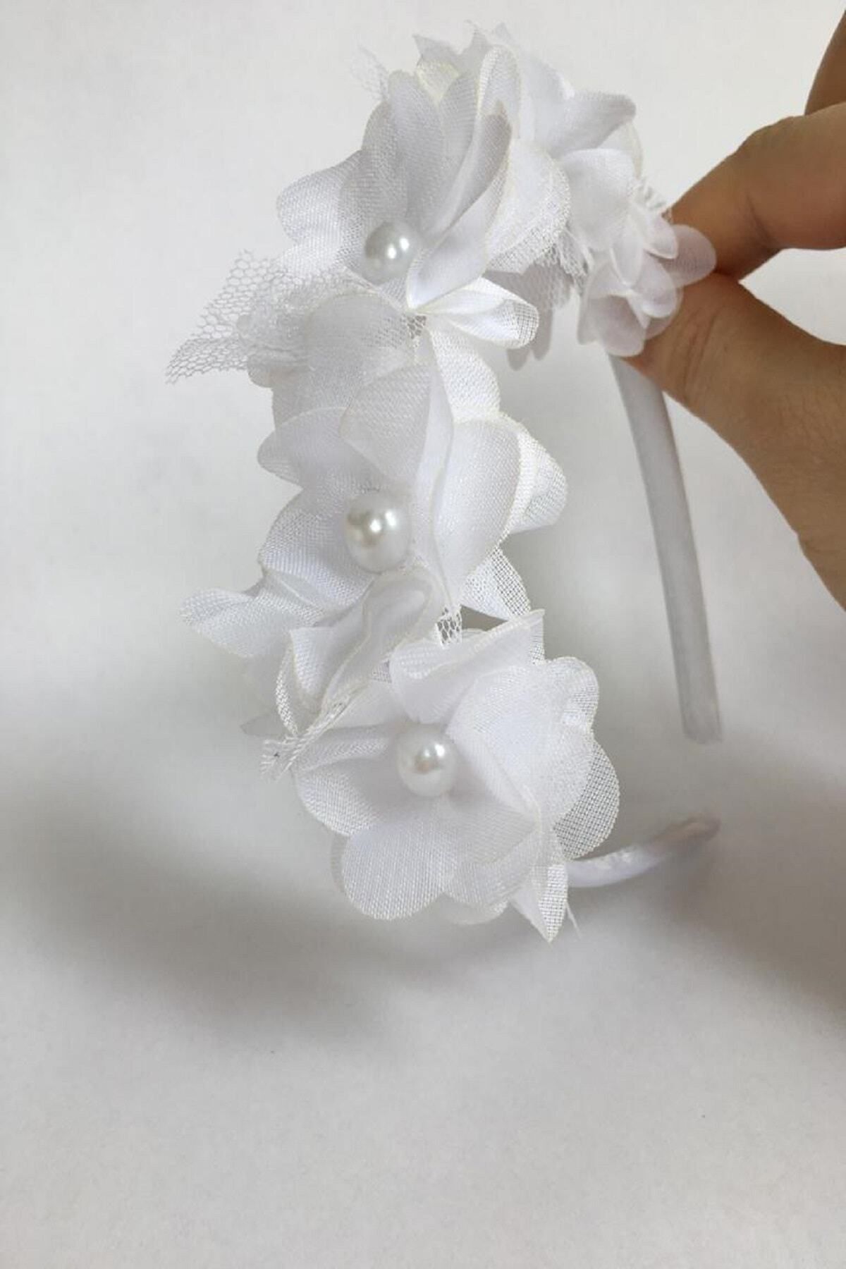 7 Çiçekli Beyaz Saten Kaplama Kız Çocuk Frıda Party Ve Özel Gün Tacı