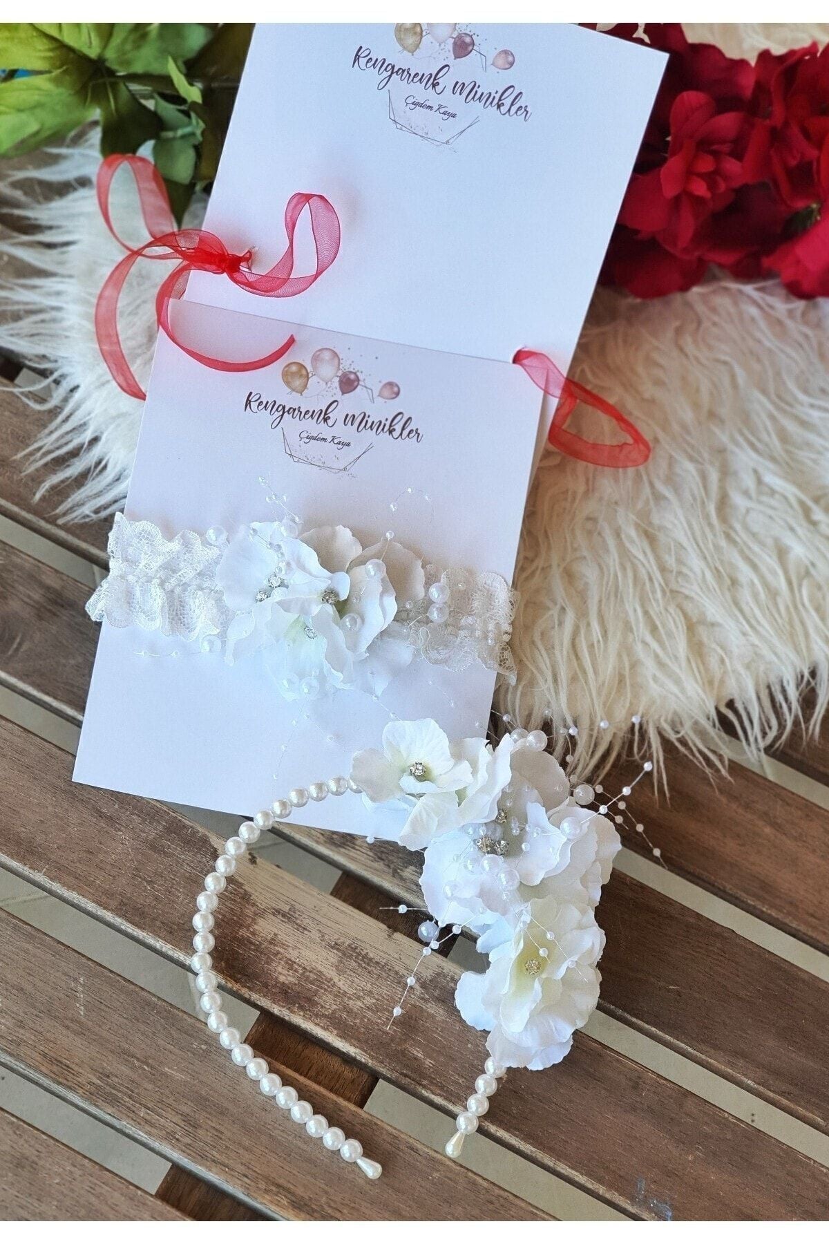 Anne Bebek Beyaz Cicek Inci Detaylı Taç & Saçbandì