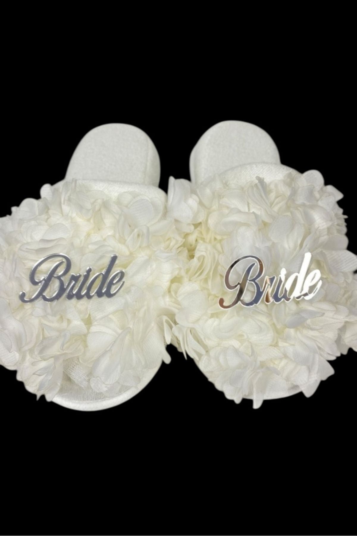 Beyaz Çiçekli Bride Gelin Terliği – Zarif ve Şık Tasarım