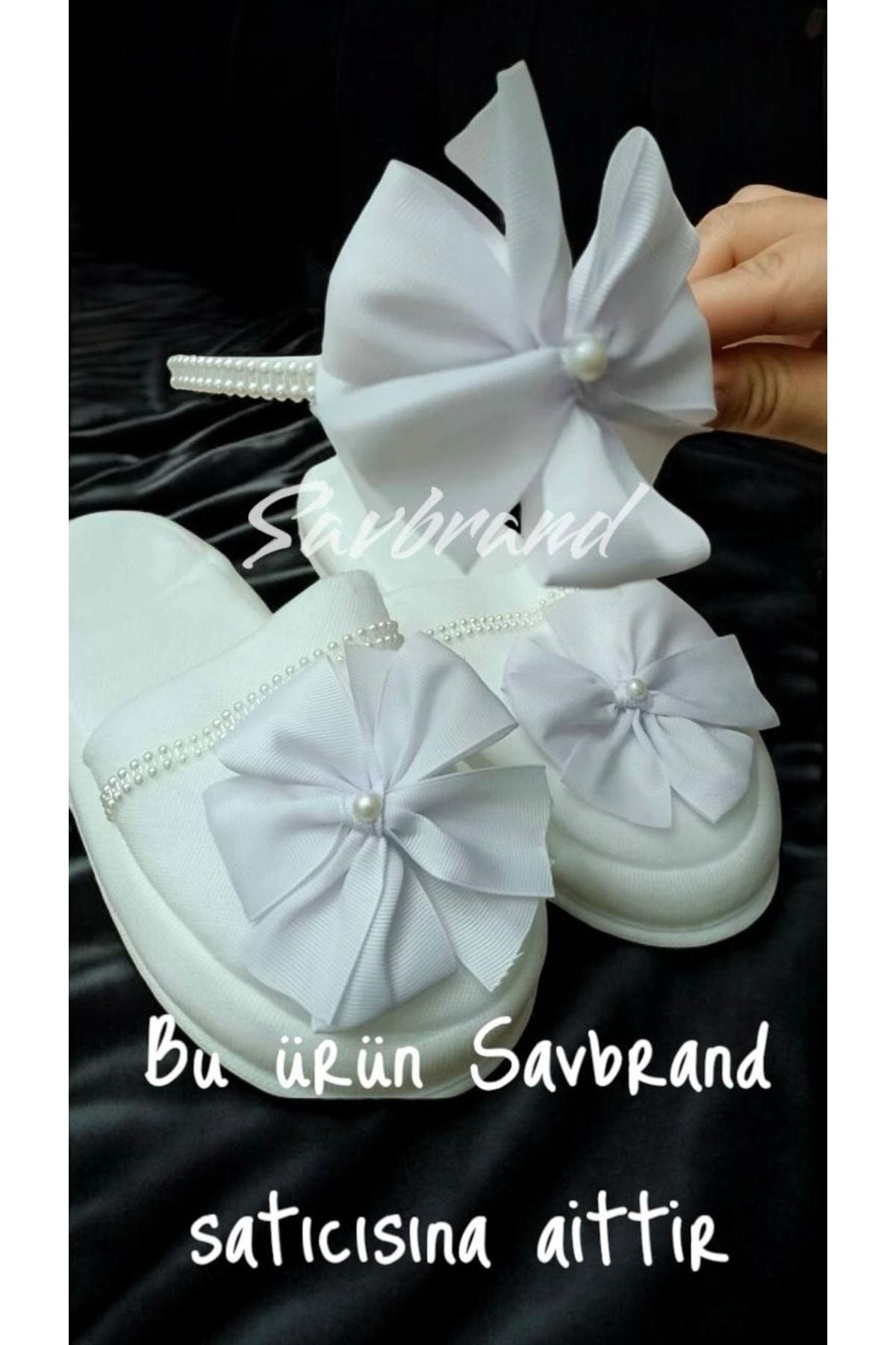 Beyaz Fiyonklu Lohusa Terliği ve Tacı | Lohusa Seti
