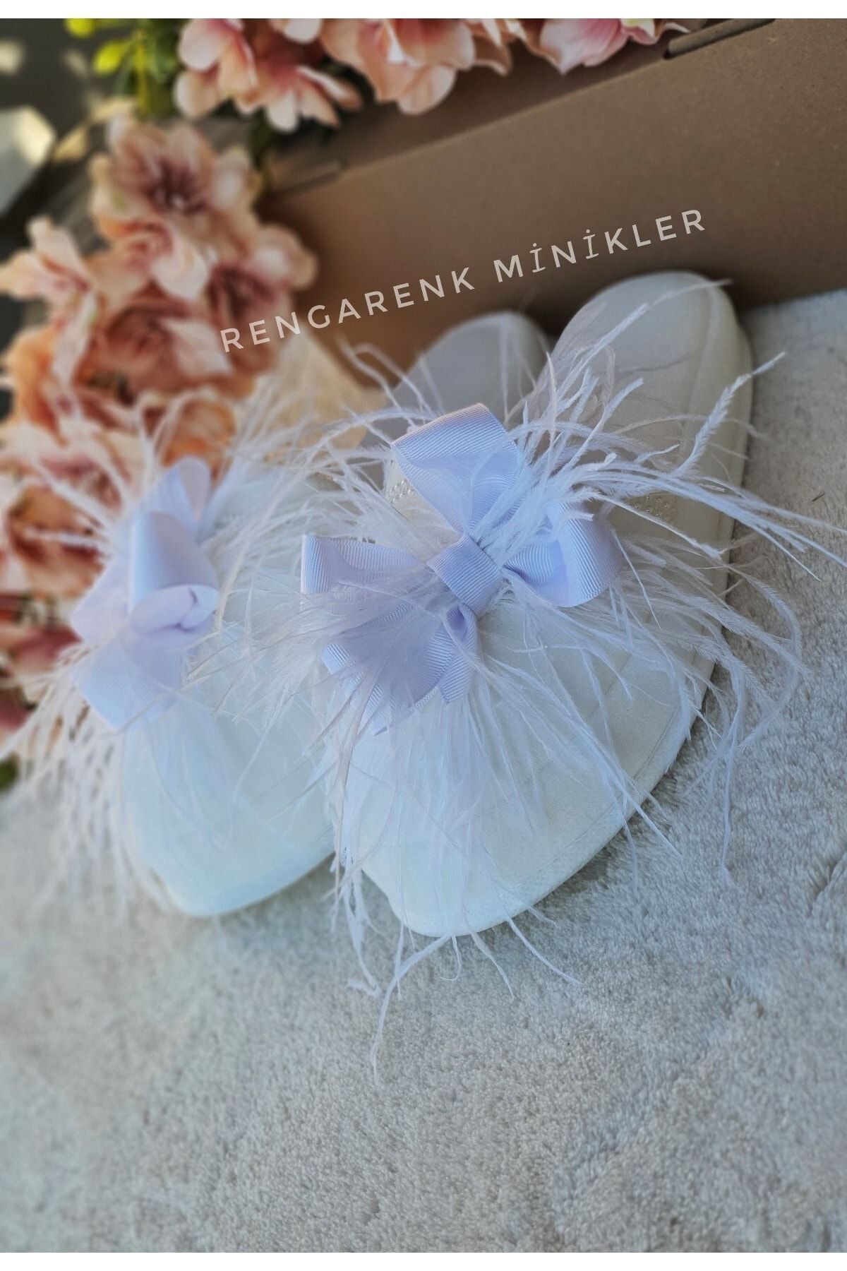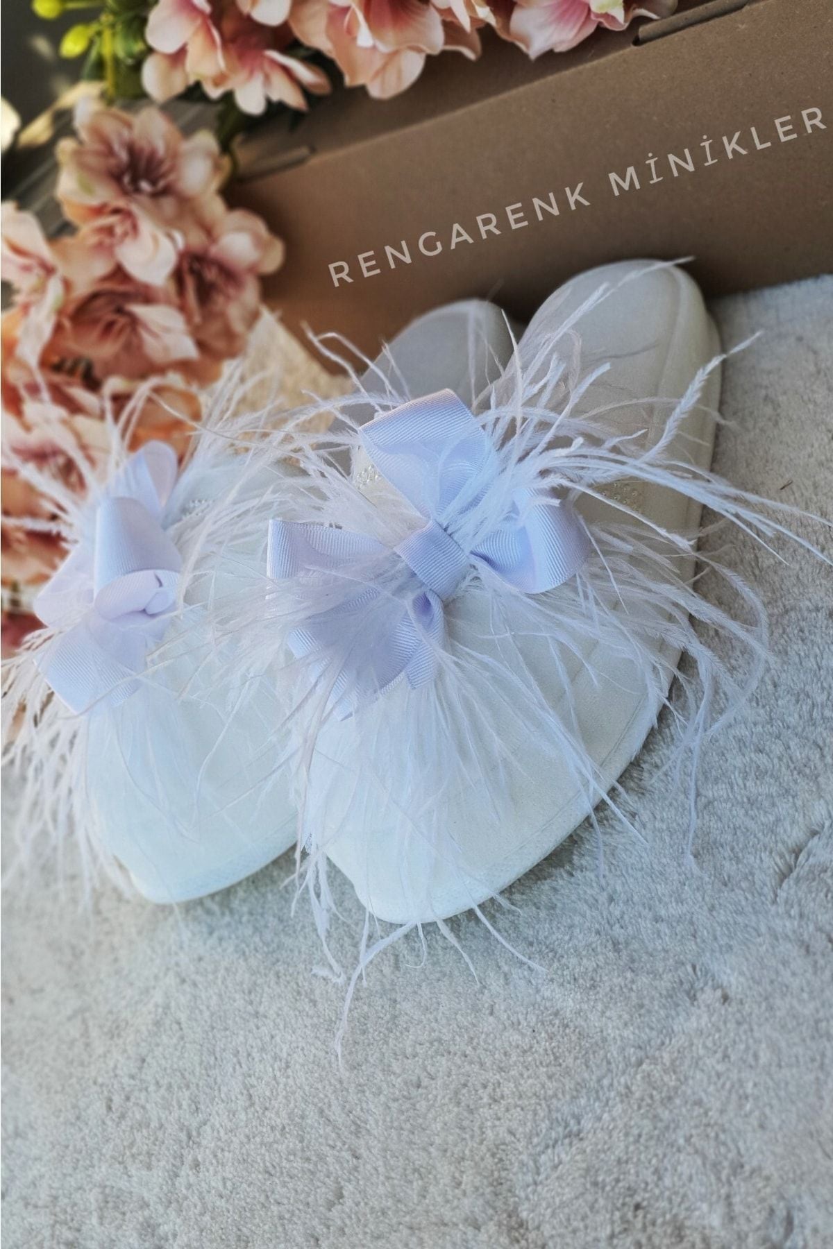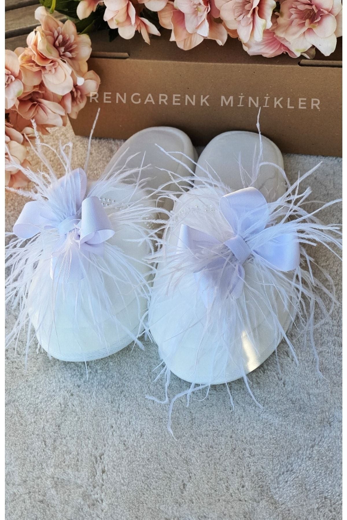 Beyaz Fiyonklu Tüy Detaylı Anne Lohusa Terligi (gelin Bride Terligi)