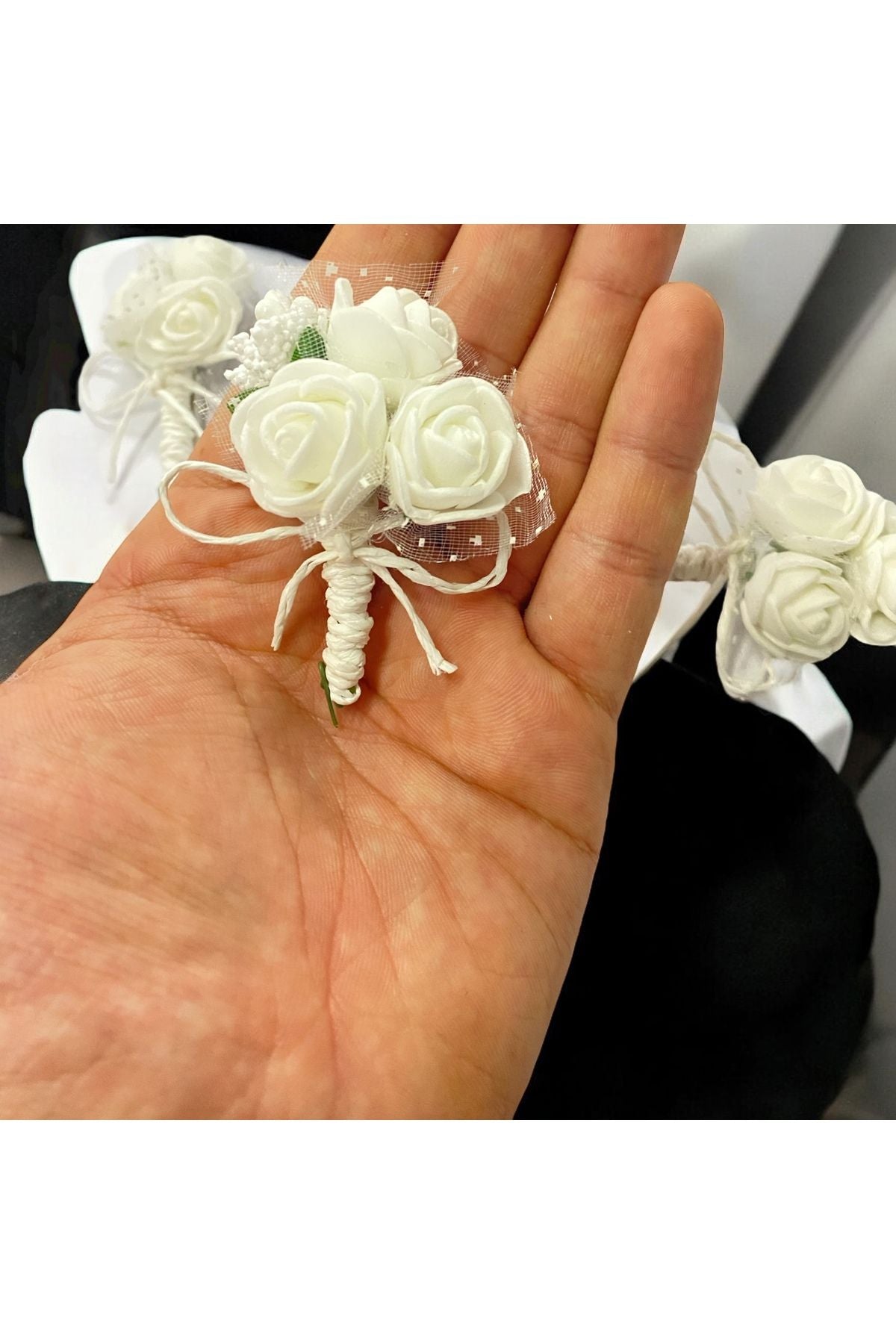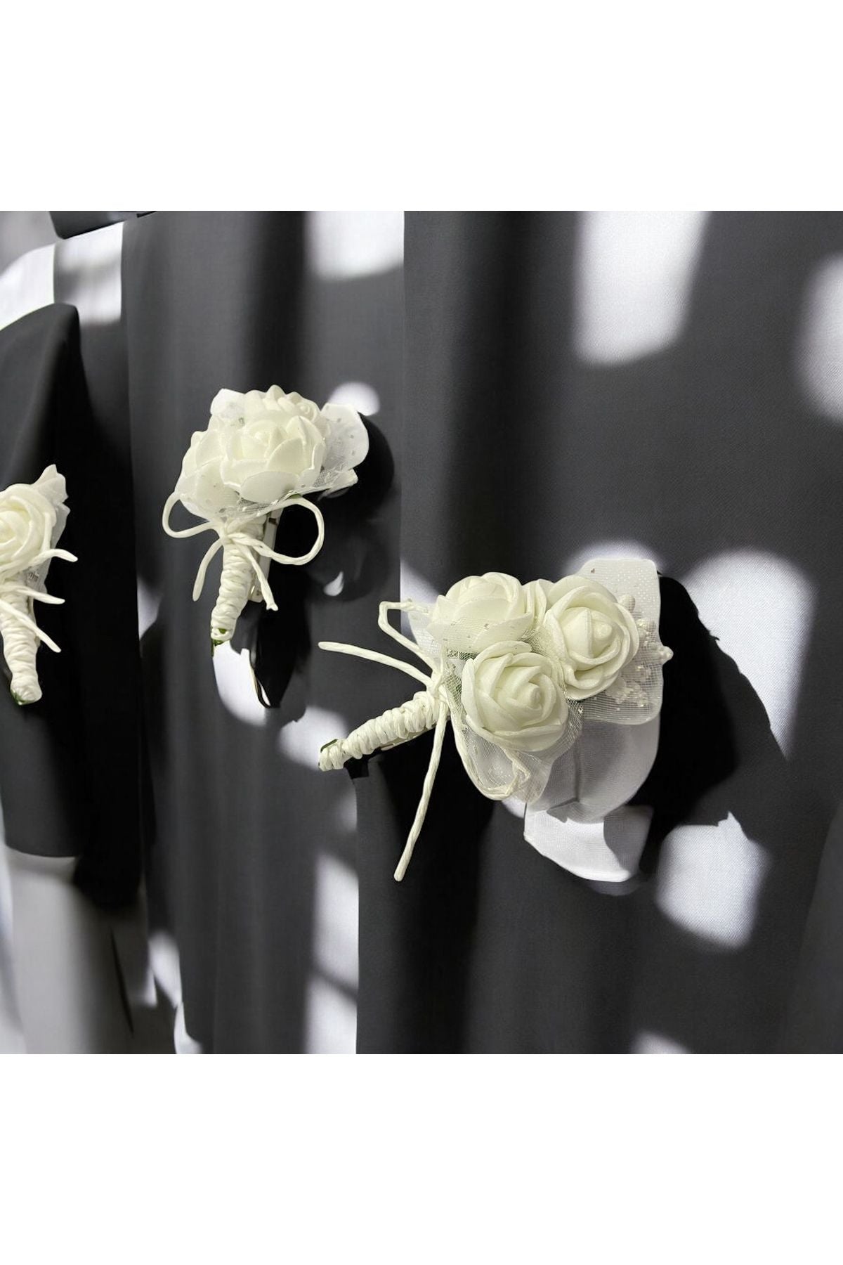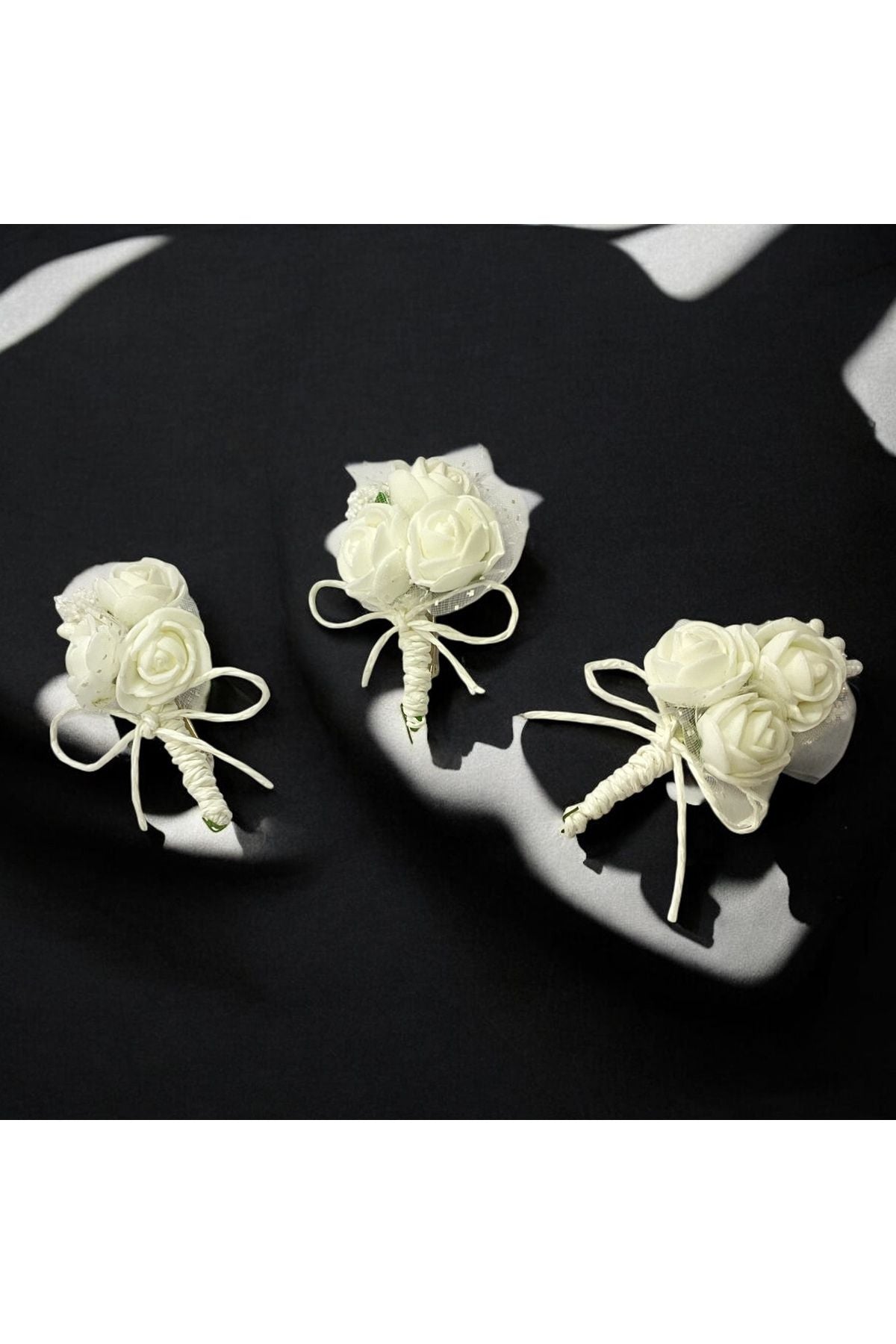 Beyaz Gül Detaylı Damat Yaka Çiçeği ve Yaka İğnesi - Kar Beyaz Şıklık”