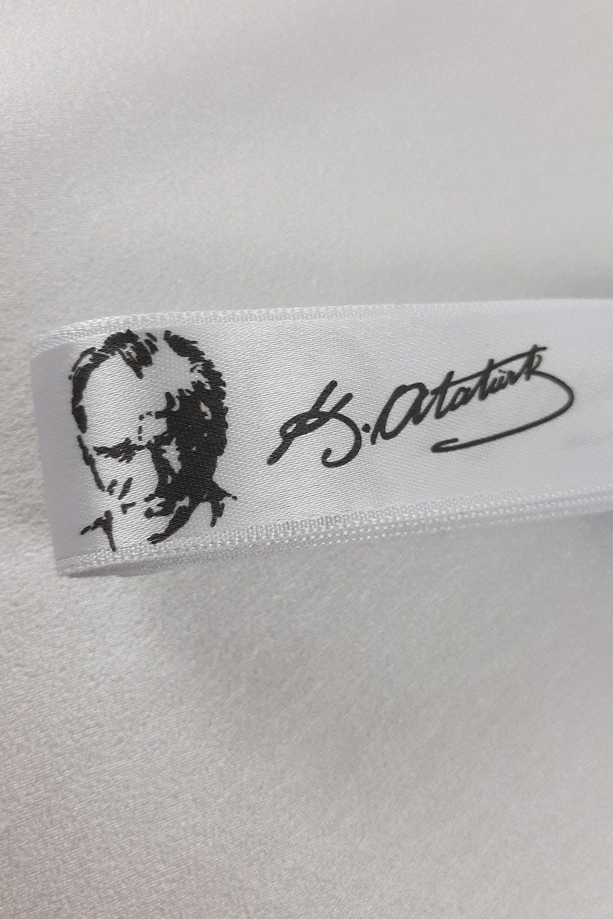 Beyaz K.atatürk Baskılı Saten Kurdele