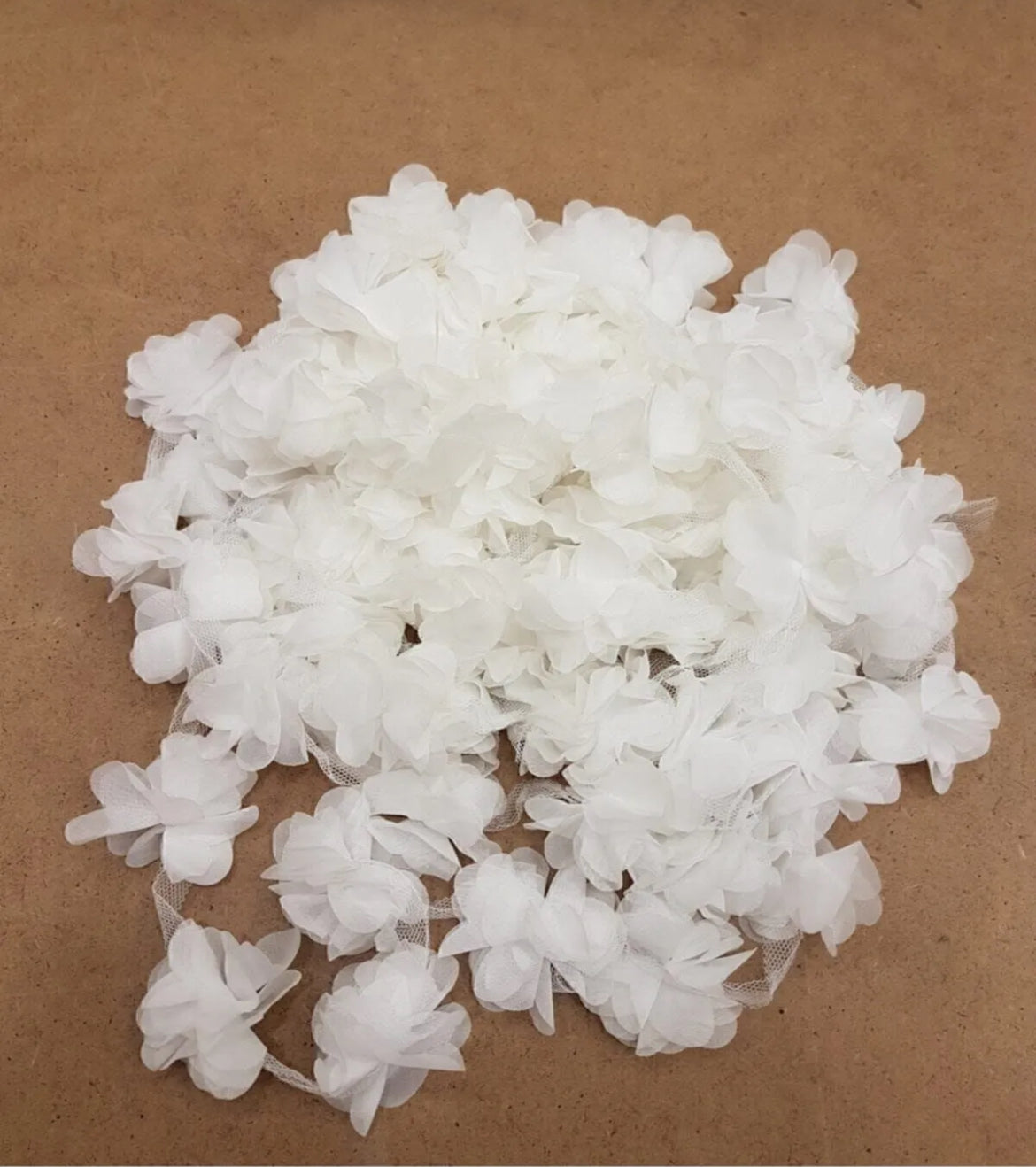 Beyaz Lazer Kesim Gül Süsleme Paketleme Malzemesi Organze Kumaş Yapay Çiçekler 1m 12 Adet