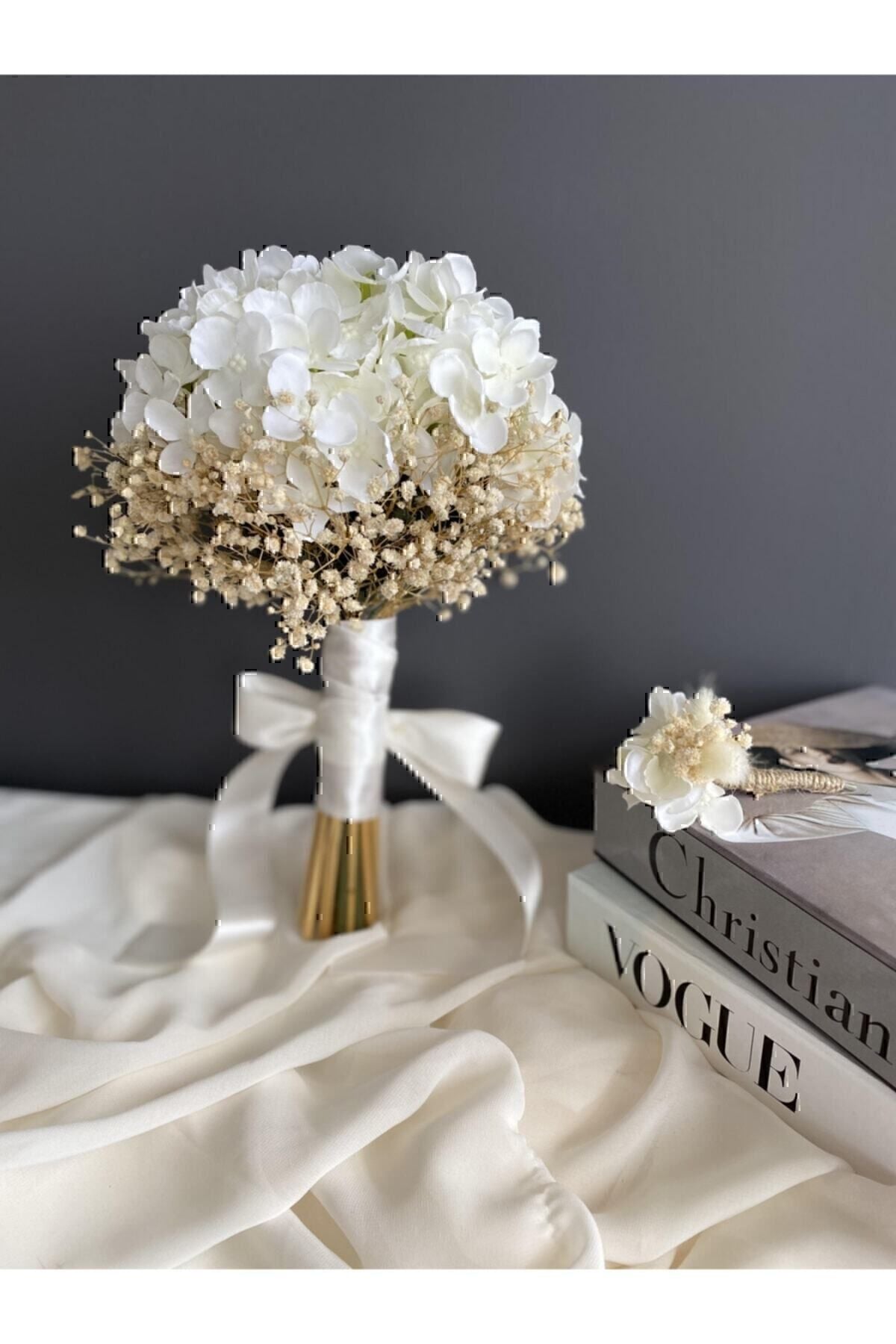 Beyaz Ortanca Cipsolu Gelin Çiçeği Yaka Çiçeği 2 Li Set